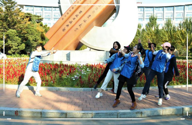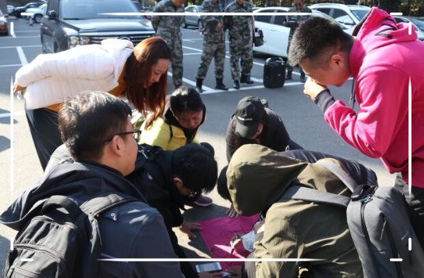 完成上一环节后的队伍,在其队员的手机上会显示第二环节的任务列表。任务分为三种:文字题视频题和拓展题。文字题的答案全部隐藏在参观校史馆的环节,幸好大家参观的时候都比较认真,文字题几乎每个队伍都拿到了满分。视频题则需要同学们奔跑在校园里时仔细留意,找到照片指示的位置(只有平时少做低头族的同学才更有优势),在该位置处完成指定动作,动作存在一定难度,需要同学们齐心协力去完成。拓展题则是在校园内找到教官,每个队伍通过集体协作,完成一些高难度挑战。每次只有3次挑战机会,挑战时间不超过10分钟,挑战失败则需要10分钟后才可重新挑战。