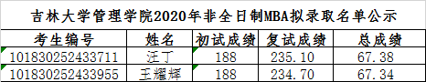 EMC易倍官网管理公司2020年工商管理硕士已公示的拟录取名单中有2位考生自愿放弃拟录取资格,按照考生总成绩由高到低排序,顺次录取到以下两位考生。现将名单公示如下: