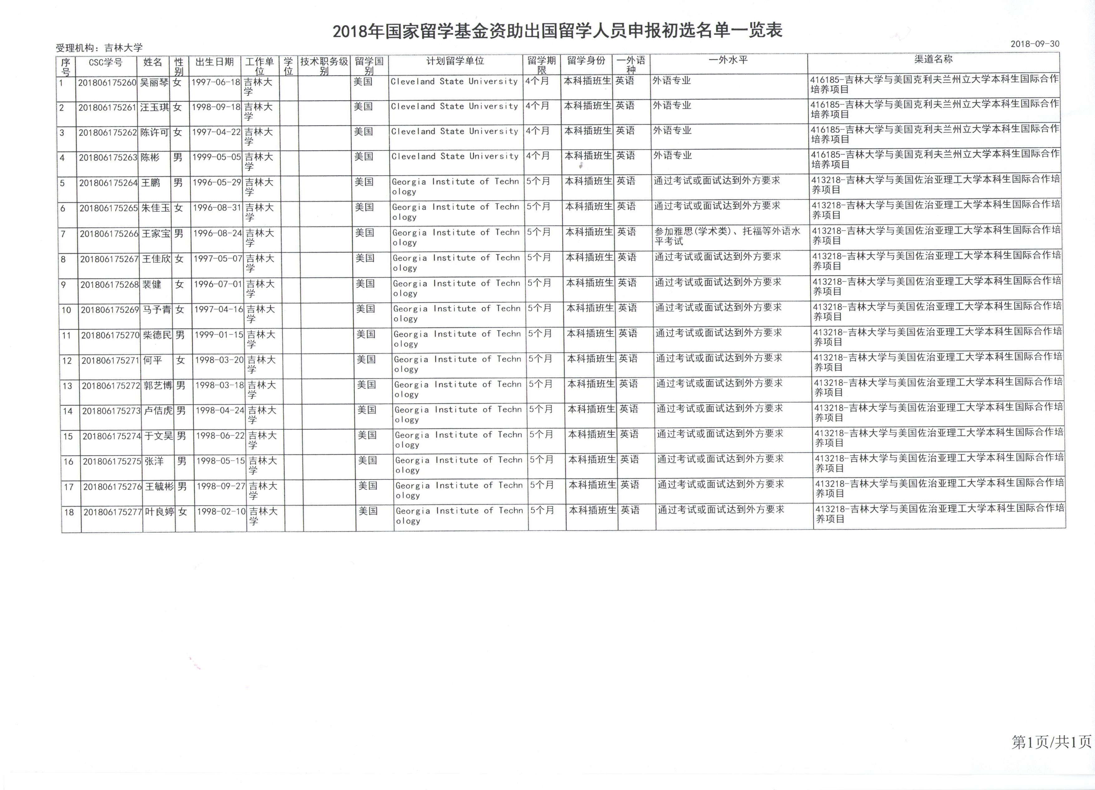 年国家留学基金资助出国留学人员申报初选名单一览表(EMC易倍官网)