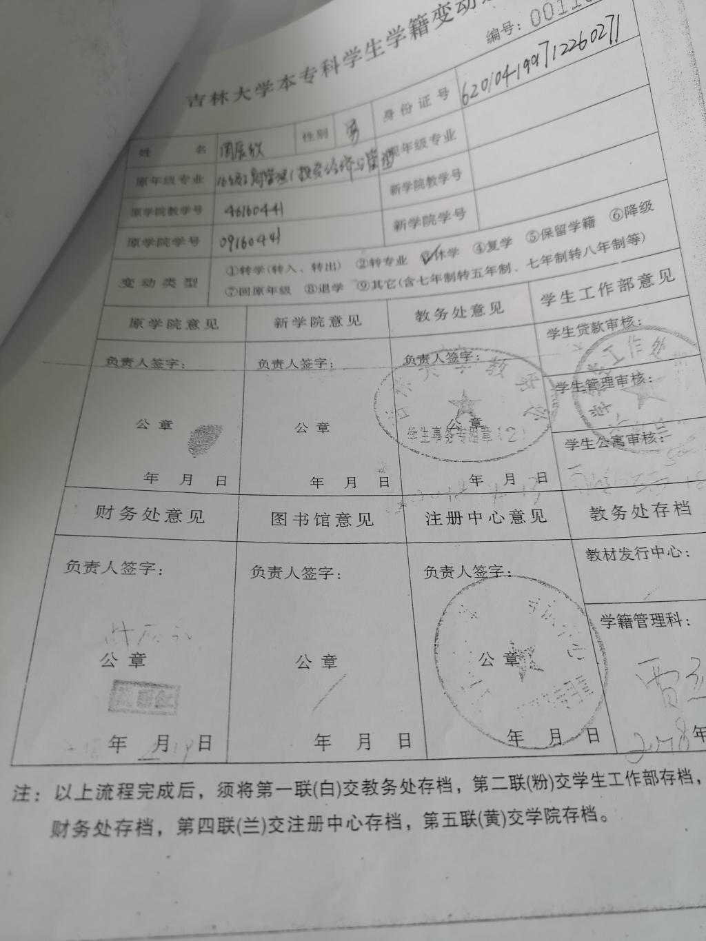 修改原因:休学