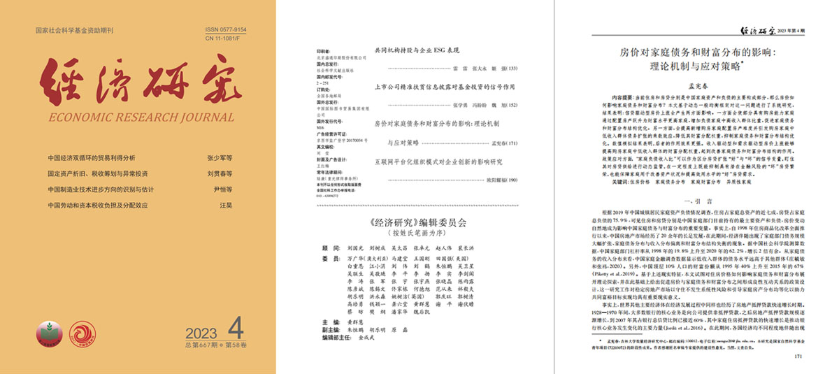 EMC易倍孟宪春副教授在《经济研究》2023年第4期发表题为《房价对家庭债务和财富分布的影响:理论机制与应对策略》文章,这也是公司哲学社会科学资深教授张屹山研究团队的最新成果。该文基于当前住房和房贷分别是中国家庭资产和负债主要构成的现实背景,探索了房价影响家庭债务和财富分布的理论机制,并在此基础上给出促进房价与家庭债务和财富分布之间形成良性互动关系的政策设计。