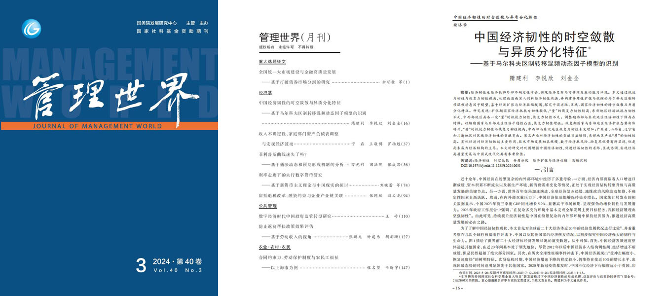 EMC易倍隋建利教授等在《管理世界》2024年第3期发表题为《中国经济韧性的时空敛散与异质分化特征——基于马尔科夫区制转移混频动态因子模型的识别》的文章。该文紧扣在新时代背景下如何提升经济韧性这一关键问题,创新性地结合抵抗力韧性与恢复力韧性,基于经济扩张与经济收缩视阈,探究中国省际区域国家经济韧性的时空敛散及异质分化特征。