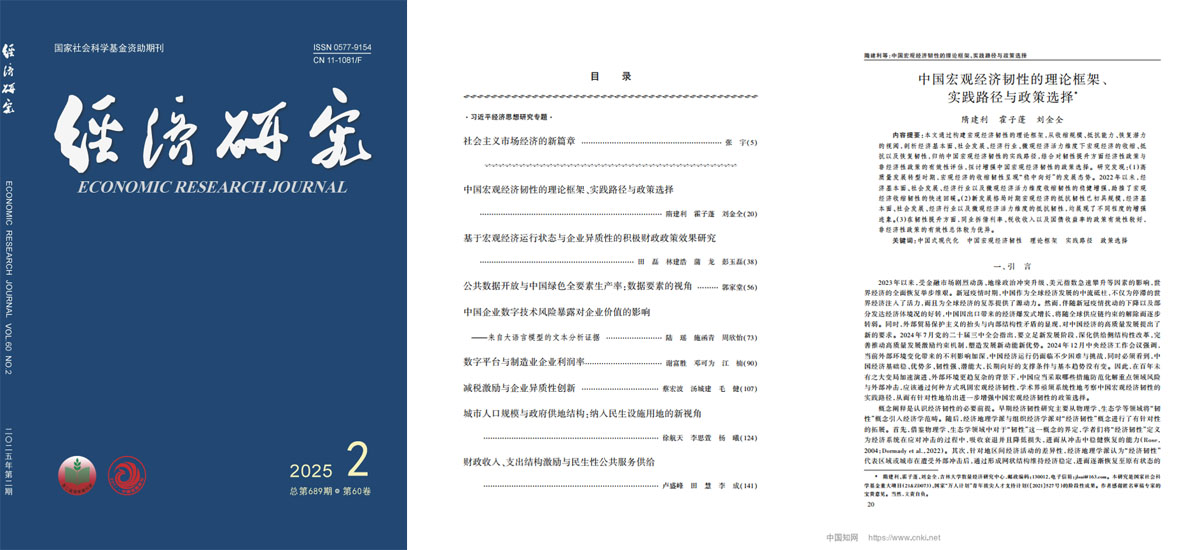 近日,EMC易倍官网数量经济研究中心隋建利教授等在《经济研究》2025年第2期发表题为《中国宏观经济韧性的理论框架实践路径与政策选择》的文章。
