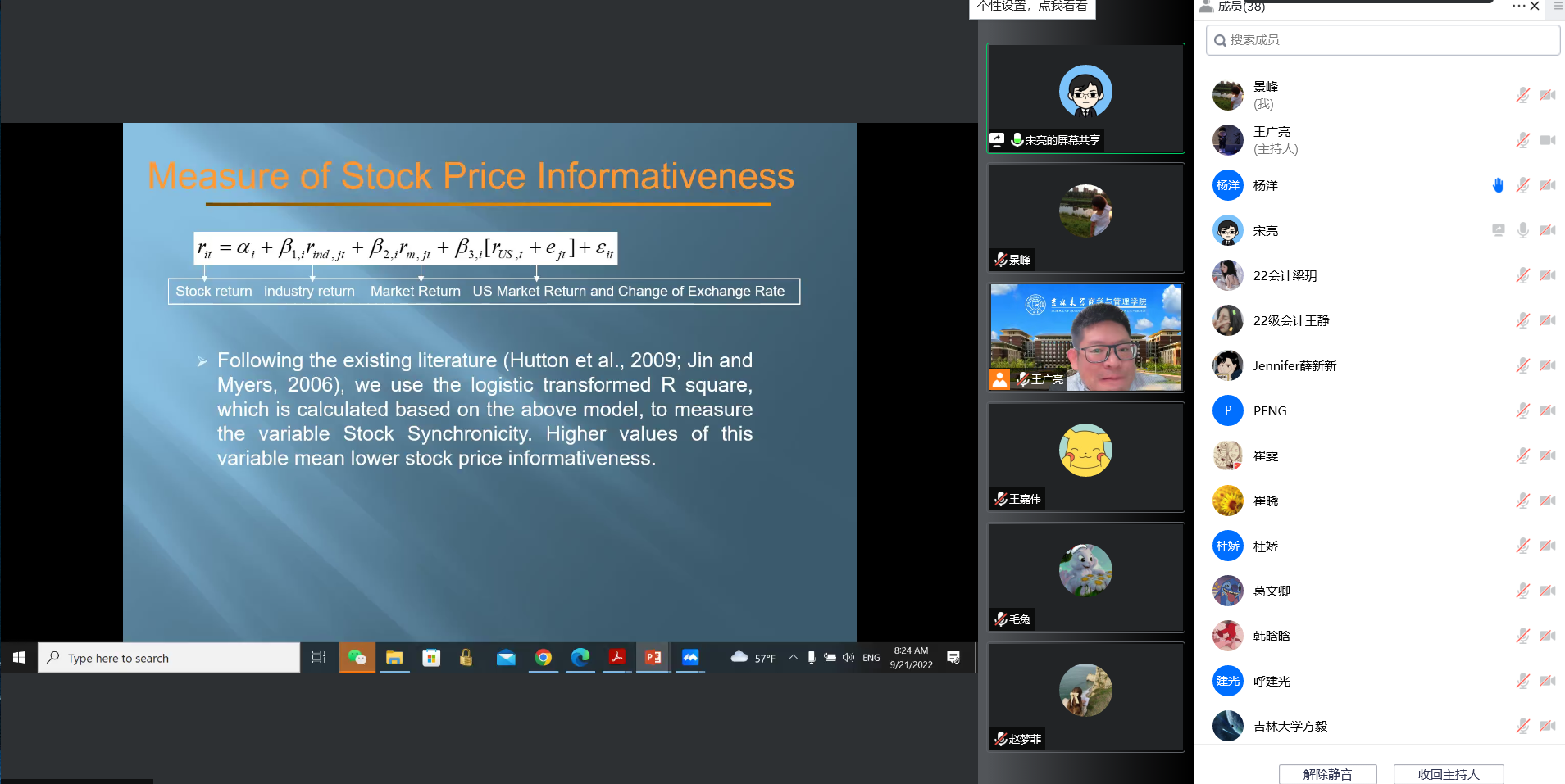 宋亮副教授的讲座题目是:Are Accounting Regulations and Enforcement Mechanisms Complements or Substitutes in Determining Stock Price Informativeness: Global Evidence,这是一篇探讨会计监管和执行机制对股价信息含量影响的工作论文。讲座首先基于会计报表信息会计监管和执行机制的相关学术研究,构建了依托于现实基础的理论框架,并提出具体假设。然后通过梳理国际银行中近三十多个国家的银行业数据,构建计量模型。随后检验了会计监管和执行机制对资本市场上股票价格信息含量的影响作用是互补效应还是替代效应。论文发现会计监管和执行机制影响会计信息性的主要渠道是信息披露直接监督和外部审计。这对于更有效的方式设计会计监管制度和执行机制具有政策意义。
