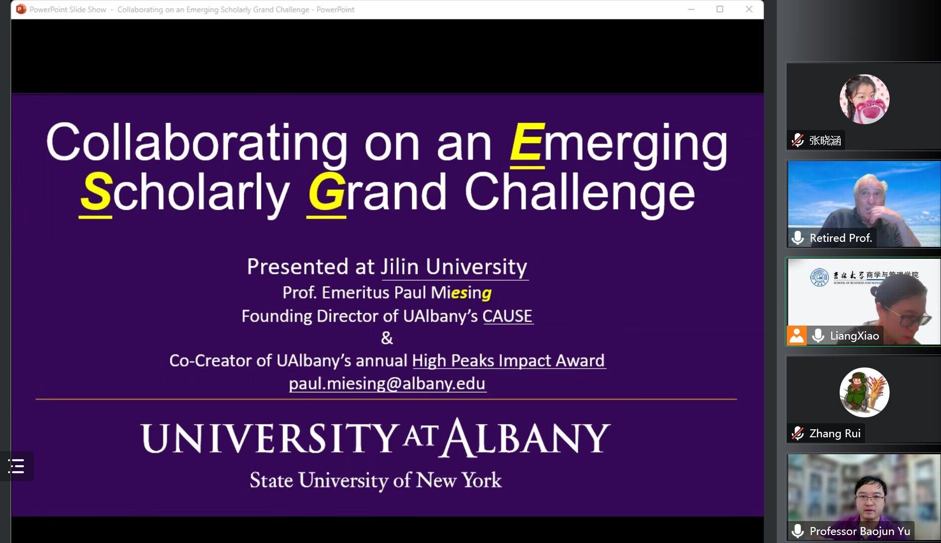 2022年10月11日上午,EMC易倍管理科学与工程系邀请了美国纽约州立大学奥尔巴尼分校(SUNY at Albany)商公司的荣休教授Paul Miesing为公司的师生进行了一场题目为《Collaborating on an emerging scholarly grand challenge》的学术讲座,讲座通过腾讯会议以线上的形式进行。EMC易倍管理科学与工程学科的老师和硕博研究生们在线参与了本次讲座。梁潇老师主持了本次会议。