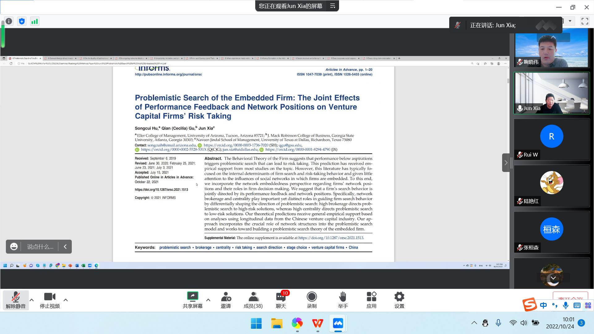 2022年10月24日,德克萨斯大学达拉斯分校Naveen Jindal商公司夏军教授受邀为公司师生带来两场学术讲座。本次讲座通过腾讯会议线上举行,吸引了公司师生以及众多外校学者的聆听。讲座由公司市场营销系主任鞠晓伟教授主持。