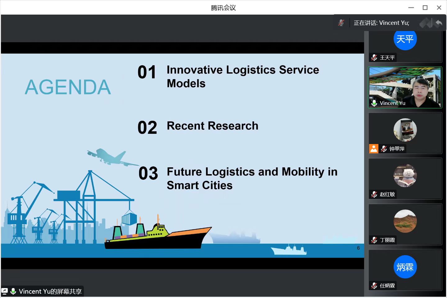 喻奉天教授毕业于美国密西根大学,多年深耕于作业研究物流与供应链管理柔性计算智慧营运数据分析人工智慧以及能源系统优化等研究领域,已发表约100篇期刊论文和200篇研讨会论文。首先,喻教授介绍了智慧城市创新物流的研究背景以及他所带领的团队当前的研究内容。随后,喻教授从创新物流服务模式前沿研究以及智慧城市的未来物流和交通三个部分鞭辟入里的为我们展开讲解了智慧城市创新物流的相关知识。针对当前已经出现的许多新型运输工具和最新物流模式配置,喻教授详细讲解了它们的运作方式以及各自的优缺点。而后喻教授向我们展示了他所带领的团队的近期研究并详细讲解了他们是如何针对当前新型问题挖掘课题方向,并将所挖掘的问题建立模型,开发出精确算法以及启发式算法求解。最后喻教授向我们介绍了如今各大物流公司和平台对于未来智慧城市物流运输发展的展望,并展示了众多公司对于未来物流工具和模式的构想。报告会最后,参会师生就此次报告内容与喻奉天教授进行了深入讨论和互动交流,针对师生提出的提问,喻奉天教授均一一细致解答。钟翠萍教授对喻教授此次报告分享表示感谢,同时希望喻教授在疫情结束后能够与师生在线下开展进一步深入的学术交流,为公司多引进人才,拓宽学术研究的国际化视野。