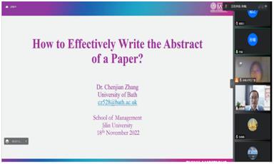 张陈健副教授现任英国巴斯大学管理公司副教授,博士生导师。于德国不来梅大学获得博士学位,斯坦福大学访问学者。研究兴趣包括经济社会学,制度理论,企业家网络,社会企业等。学术成果发表于Strategic Management Journal, Journal of International Business Studies, Management and Organization Review等。为顶尖管理期刊担任审稿人员并系统地参与过学术写作训练,现担任Management and Organization Review高级编辑。本场讲座题目是:如何有效写作论文摘要?张陈健副教授介绍了摘要写作的4W方法,主要从过去的研究和连接性陈述我们的研究做了什么我们的研究发现了什么以及为什么这个发现是有意义的这四个方面介绍了如何有效写作论文摘要,使人力资源管理系的师生受益匪浅。