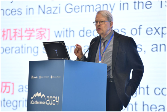 在主旨报告环节,Michael Seadle发表了题为“Information Science: History, Ideas, Applications”的演讲。他指出,信息科学是一种跨越边界的思维方式,不仅涉及特定信息的选择和组织,还涉及信息的处理使用存储和收集等多个方面。Michael Seadle展示了全面而深入的信息科学图景,强调信息科学在当今社会的重要性与广泛的应用前景。