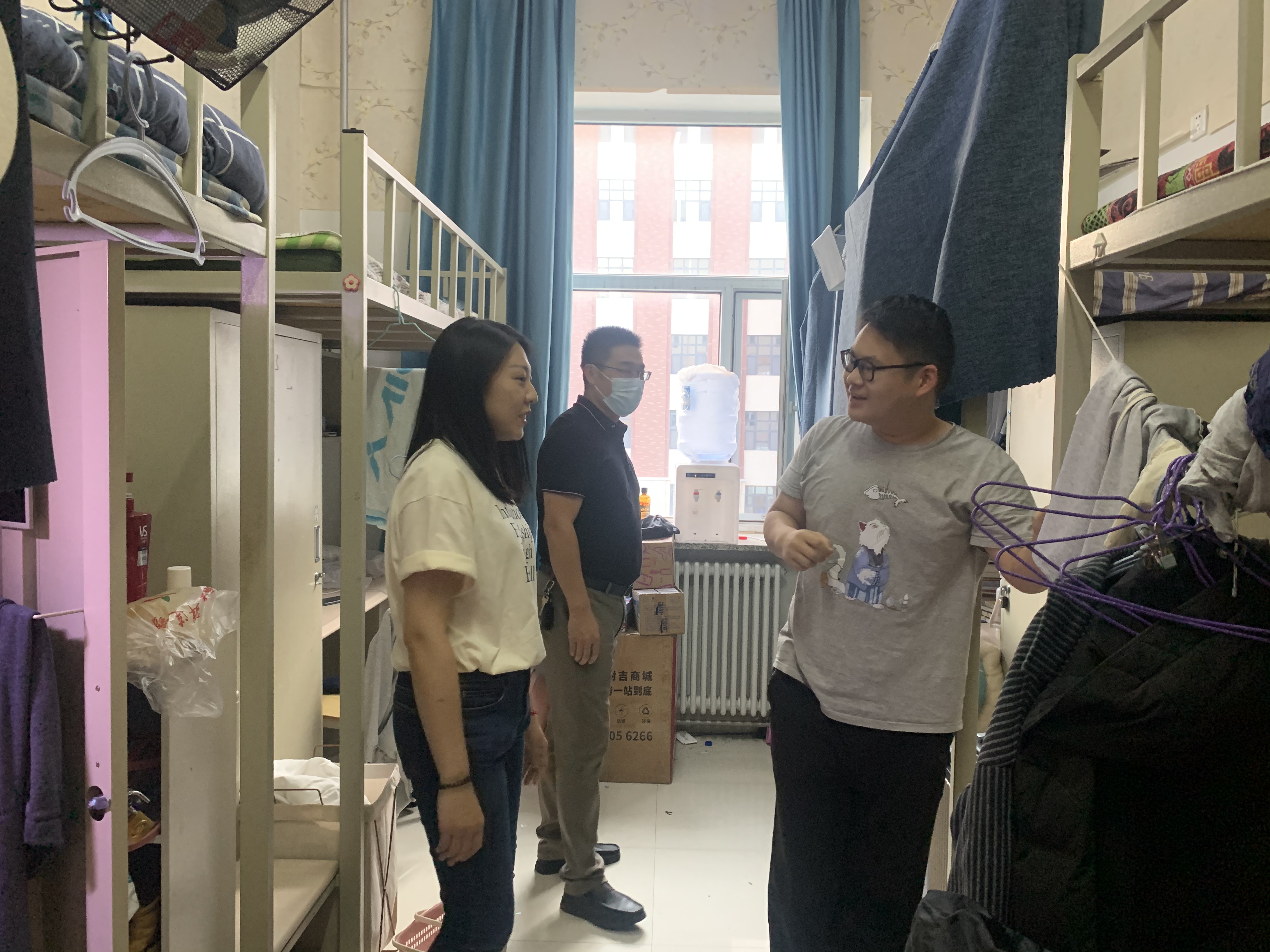为贯彻落实《关于开展EMC易倍官网本(预)科员工公寓卫生安全检查专项行动的通知》工作要求,排查宿舍安全隐患,进一步提高员工的生活质量,督促员工养成良好的生活习惯,创建安全整洁文明的学习和生活环境,2022年9月29日-9月30日,公司党委副书记兼副经理李帅,2021级辅导员丁越,2020级辅导员刘天目禚传阳,2019级辅导员陈卓刘翔宇及2022级辅导员李毓贾奇达深入员工寝室,开展公寓安全检查专项行动,扎实完善安全细节,确保校园安全。