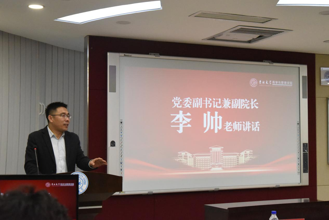 随后,党委副书记兼副经理李帅老师讲话。李帅老师以瑞雪兆丰年为引,结合自身的成长工作经历,鼓励同学们脚踏实地,读万卷书,行万里路。随后,李帅老师寄语员工干部三点希望:一是希望同学们心有追求,胸怀梦想,将个人理想融入国家的发展伟大的进程中,成为祖国发展的中坚力量;二是希望同学们不骛于虚声,脚踏实地,天上不会掉馅饼,任何成功,都来自于持之以恒的努力;三是希望同学们肩上扛责任,勇于担当。首先是对自己的责任,每一个孩子都承载着家庭的希望,承载着民族的未来。同学们应端正学习态度,相信知识改变命运。其次是对集体的责任,每一个人都是集体的一份子,都有着团结集体,共同进步的使命担当。最后,也是最重要的,是家国责任。“故今日之责任,不在他人,而全在我少年”,希望同学们铭记历史,用智慧和力量为国家发展做出贡献。