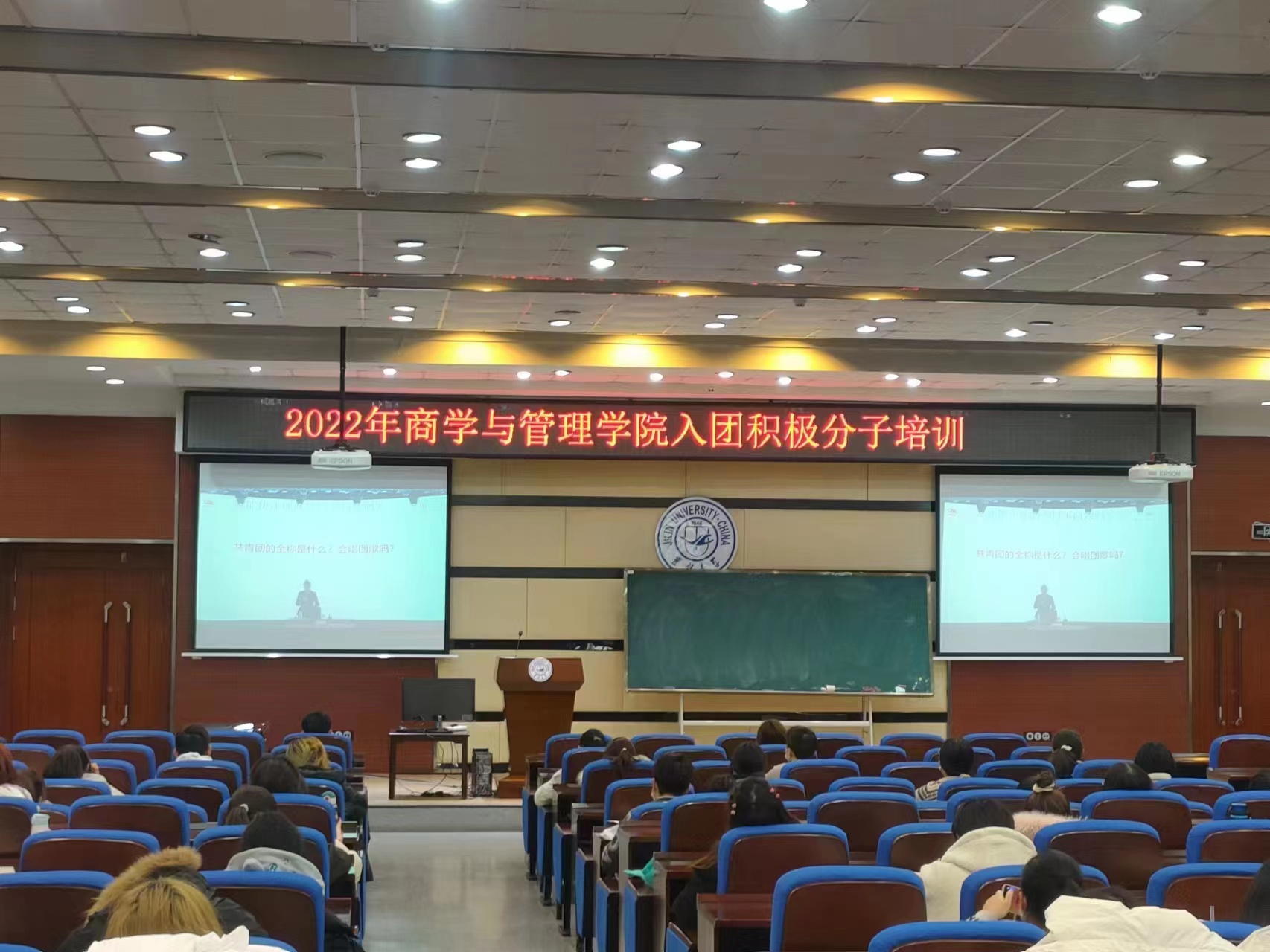 本次培训包括入团宣传教育观看团校视频和入团积极分子发言三个环节。首先,由团委副书记王艺睿介绍了本次培训的总体安排和要求,明确了加入中国共产主义青年团的具体流程。同时希望同学们珍惜学习机会,全身心投入学习培训,真正做到学有所获,早日成为共青团员。随后,全体参会人员观看吉林省团校入团积极分子培训视频。郝文丽老师从团史学习教育讲起,全面向同学介绍了中国共青团的历史和团务工作,深刻论述了中国共青团的政治先进性和时代先进性。团组织要不断发展壮大,要不断吸收新鲜的血液和力量,而这新生的力量就来自于我们每一位要求进步的热血青年。同时,郝老师结合党的二十大精神,希望同学们要认真接受政治训练加强政治锻造追求政治进步,积极向团组织靠拢,以成长为一名合格的共青团员为目标为光荣。最后,入团积极分子代表对本次学习做出感悟,同学表示通过此次培训,系统地学习革命历史,重温峥嵘岁月,自己对团的基础知识有了更为深入的了解,进一步坚定成为共青团员的信念。