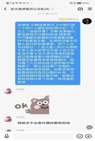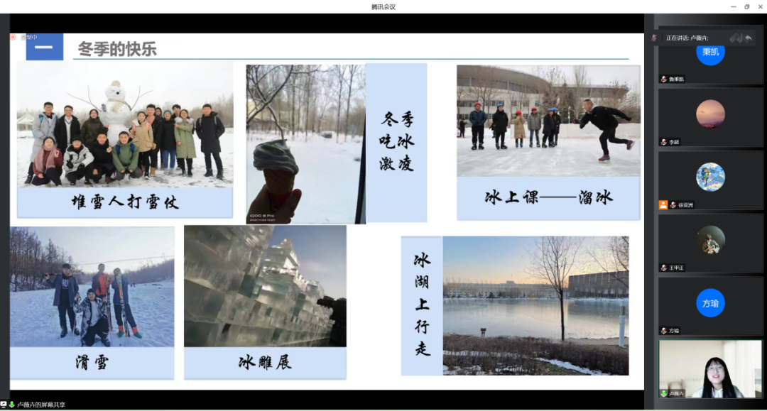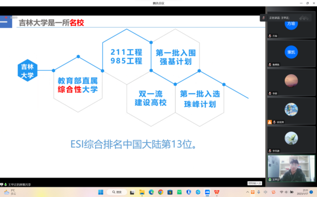 1月17日晚21:10——21:40,“沂起来吉大队”四人在临沂商城实验公司宣讲分会场2分别从吉大是一所什么样的大学在吉大的学习生活在吉大的日常生活以及吉大学子未来的发展四个方面展开宣讲,并热情地讲述了自己高三学习的经验,为学弟学妹提供学习报考新思路,反响热烈,互动激烈。因宣讲公司众多,临沂商城实验公司使用了腾讯会议云录制功能并将其分享至高三班级群内,方便同学与家长随时观看回放,提升了宣传力度。至此,本次宣讲活动圆满结束。