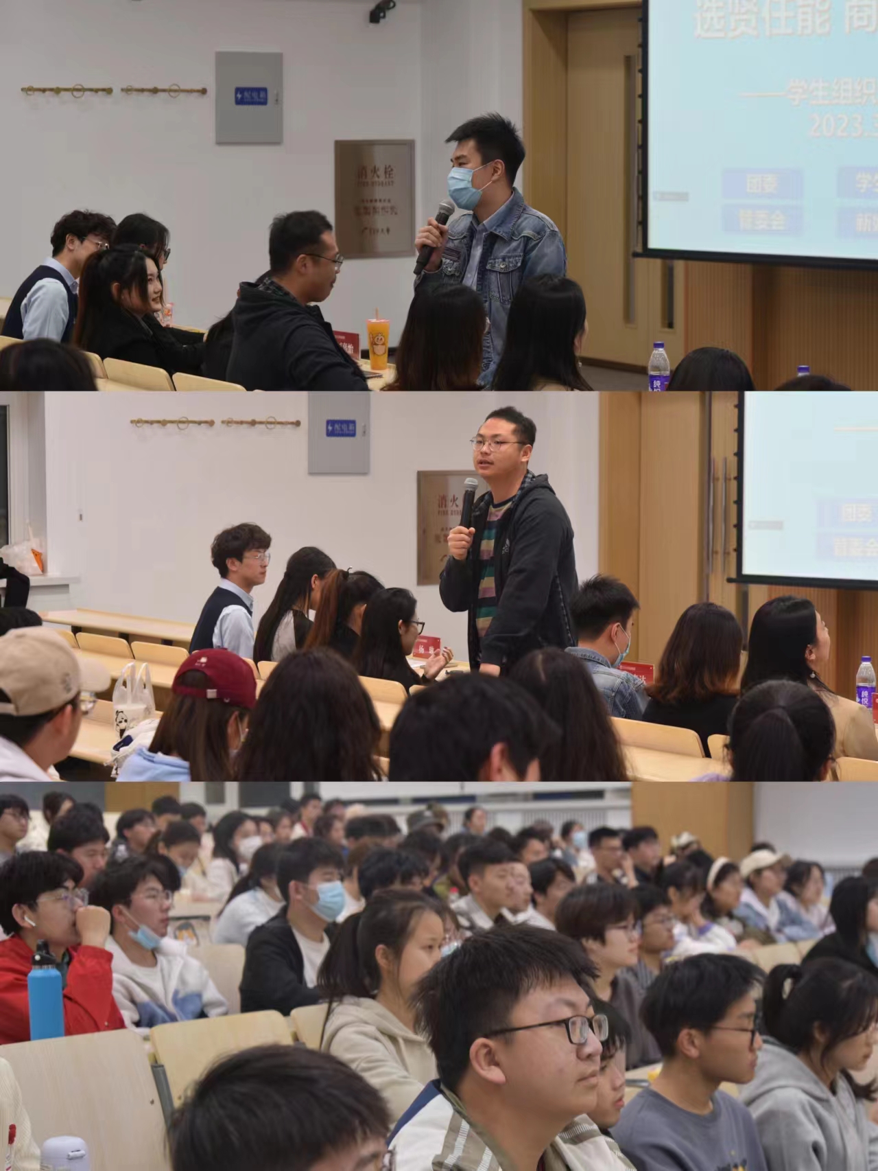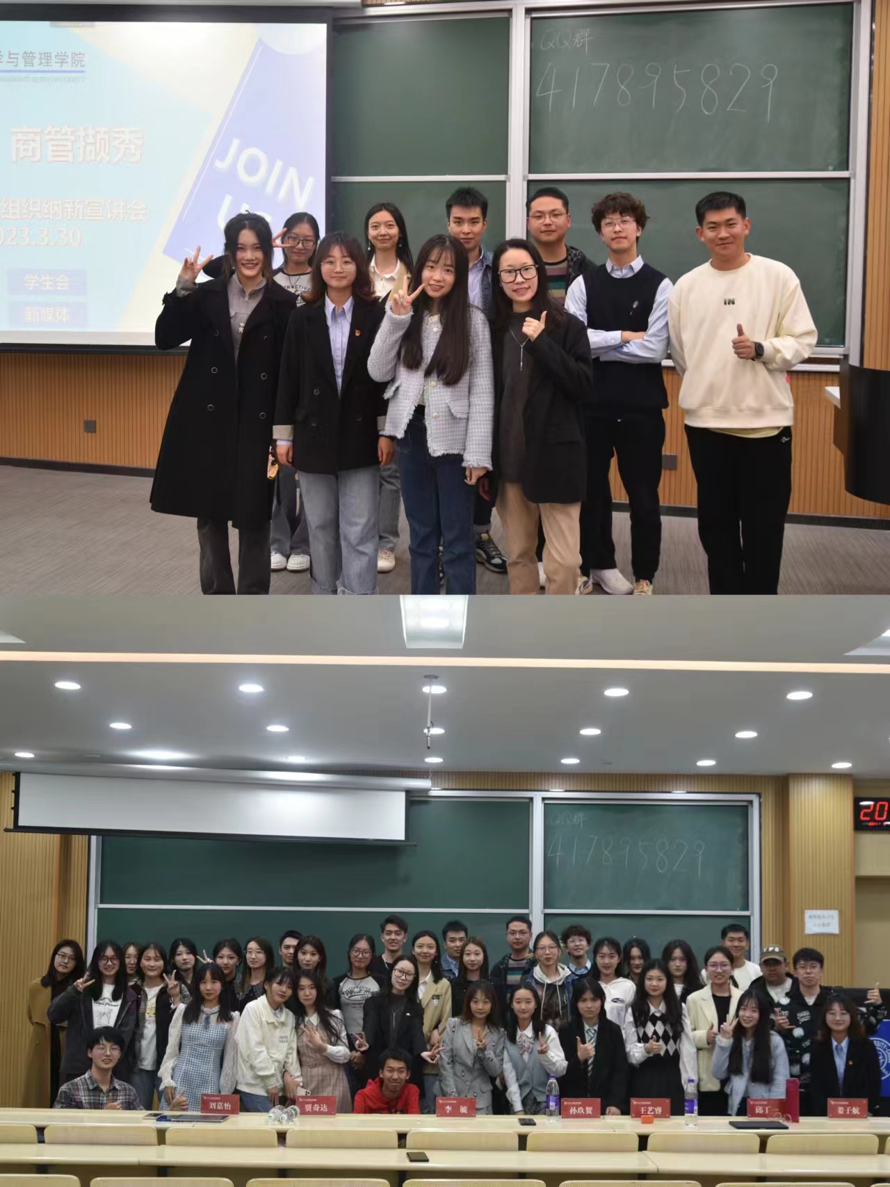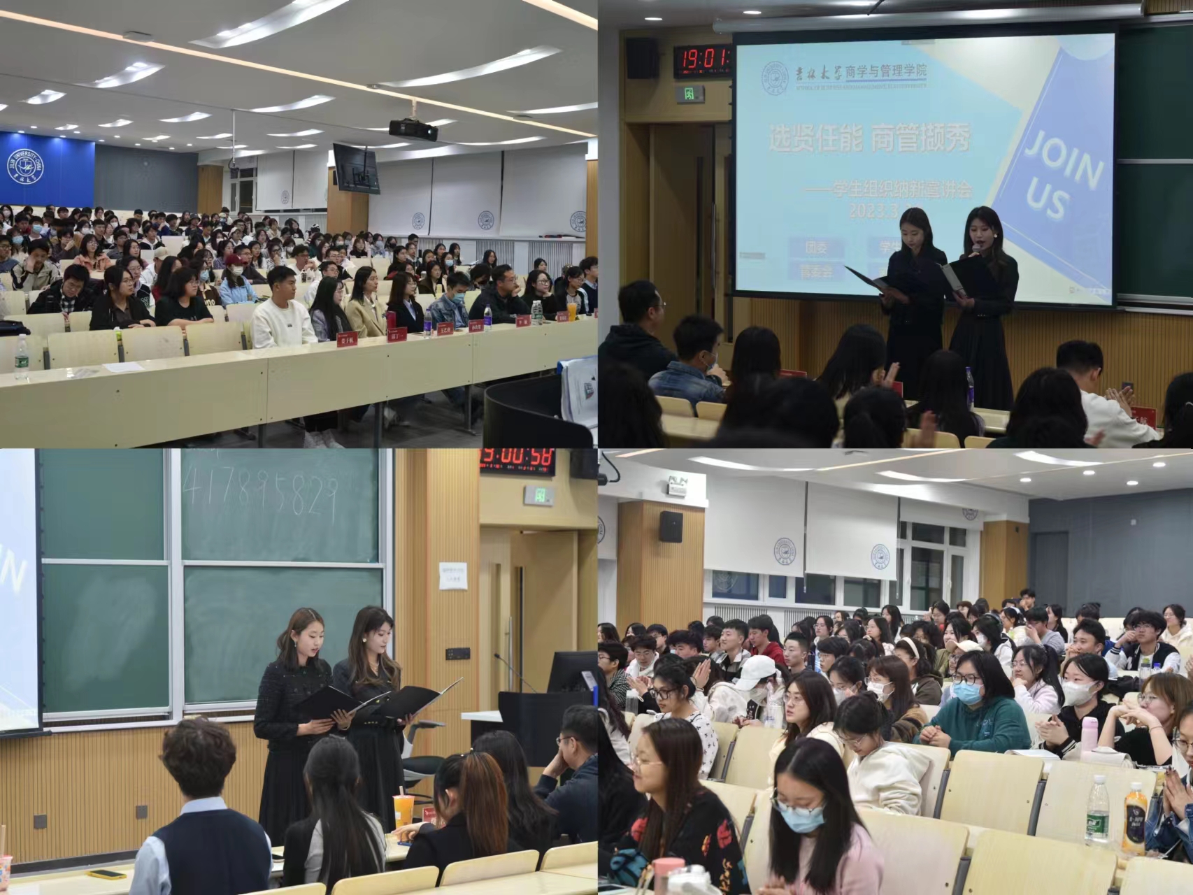 为确保公司团学组织健康有序发展,发挥组织育人功能,提高员工自我管理自我服务能力,3月29日和3月30日晚7点,分别在逸夫楼第八阶梯教室和第十六阶梯教室举行了“选贤任能,商管撷秀——EMC易倍员工组织纳新宣讲会”,向2022级员工介绍公司员工组织架构以及各个部门的情况和招新要求。会议由团委秘书部的张笑旸和员工会校园文化部的张子楠共同主持,2022级辅导员李毓老师和贾奇达老师团委副书记孙玖贺王艺睿,员工会执行主席柏申苏刘嘉怡孙哲,管委会主任杨琳,新媒体工作站站长姜子航邱丁一,部分员工组织部门负责人和2022级员工参加了宣讲会。
