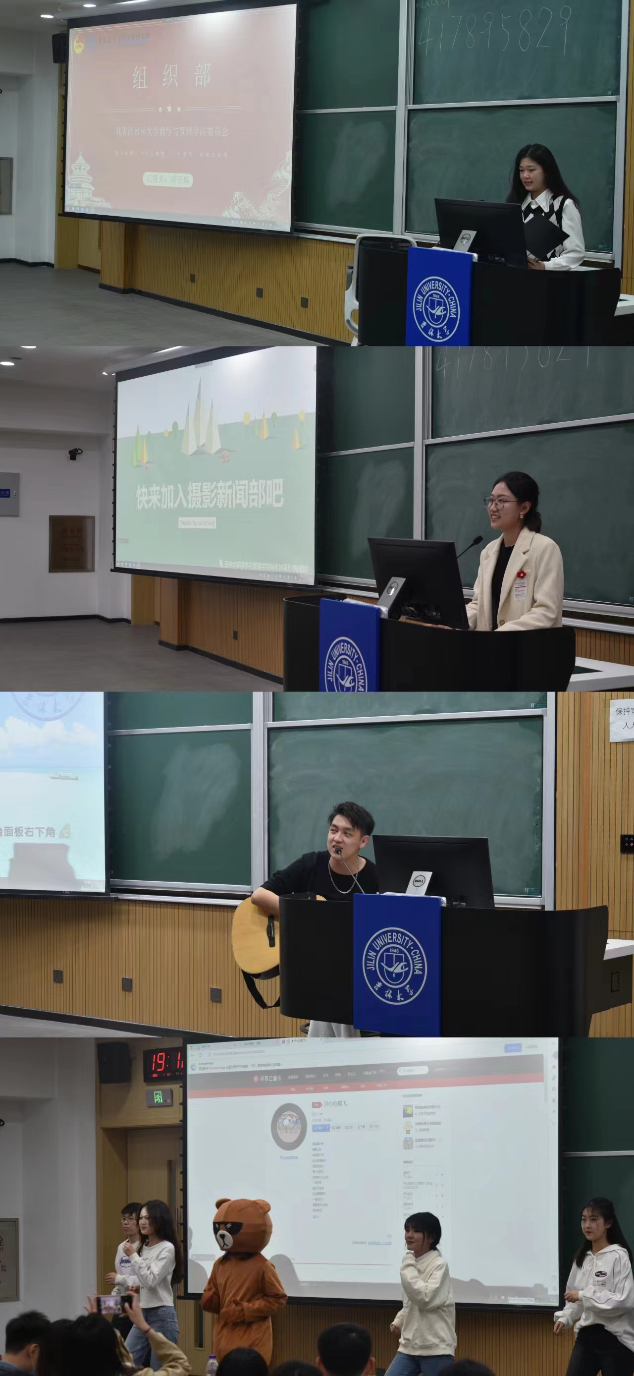 接下来各个组织部门的代表纷纷介绍了自己的组织架构活动范围和招新要求,从先进青年群众性组织的团委到联系广大同学桥梁和纽带的员工会;从服务宿舍公寓员工生活的管委会到员工媒体运作的新媒体,介绍异彩纷呈。期间还穿插着活动表演,有歌舞吉他情景剧,赢得同学们阵阵掌声。