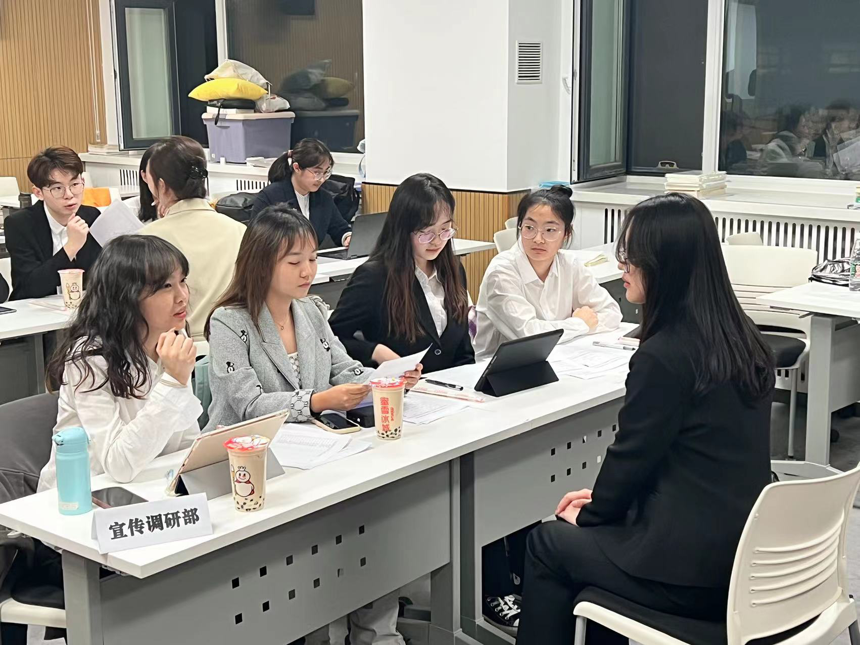 本次活动分为四个会场来进行纳新面试工作,2022级新生携带纸质报名表前往各教室进行签到后参与面试,各组织工作人员进行面试提问,了解同学们的基本信息与能力特长。前来面试的新生充分展示自己的能力与风采,各部门根据工作需求选择合适的同学加入团学组织中。最后各部门经过商讨,以QQ群发布官网纳新公示的方式通知新生面试结果。