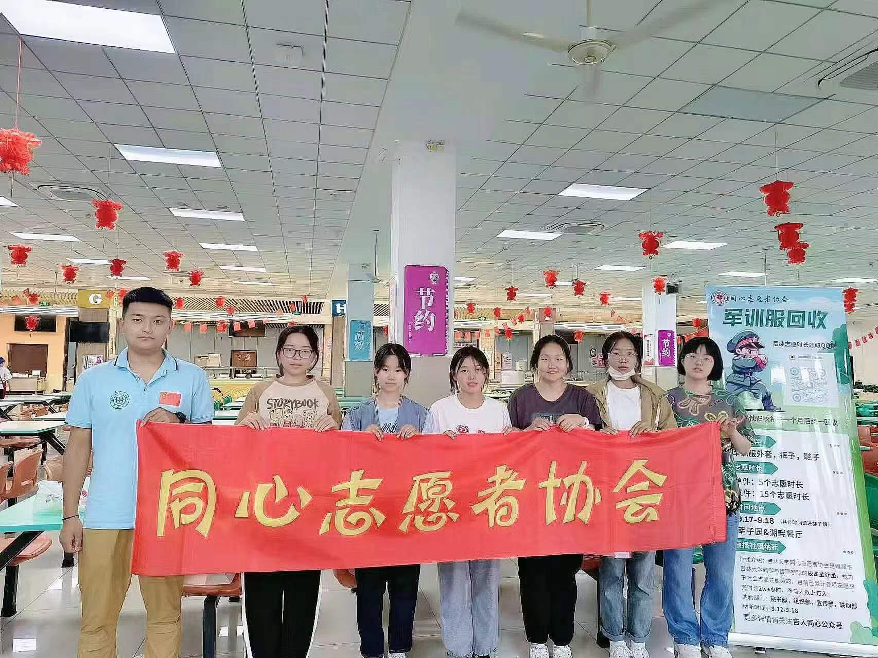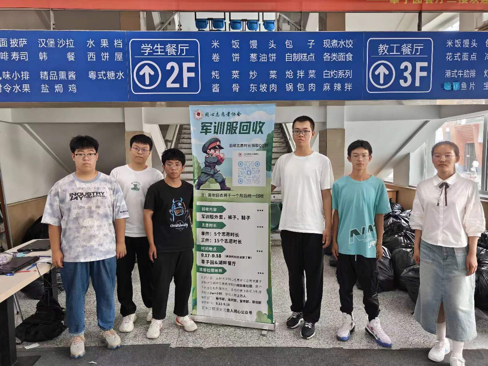 为弘扬勤俭节约的美德,践行“绿水青山就是金山银山”的绿色生活方式,传递“奉献友爱互助进步”的志愿者精神,在院团委的支持下,EMC易倍官网同心志愿者协会于2023年9月16日至9月17日在翔远餐厅莘子园餐厅以及湖畔餐厅举行了军训服回收活动,将回收的军训服捐赠给食堂的工作人员。