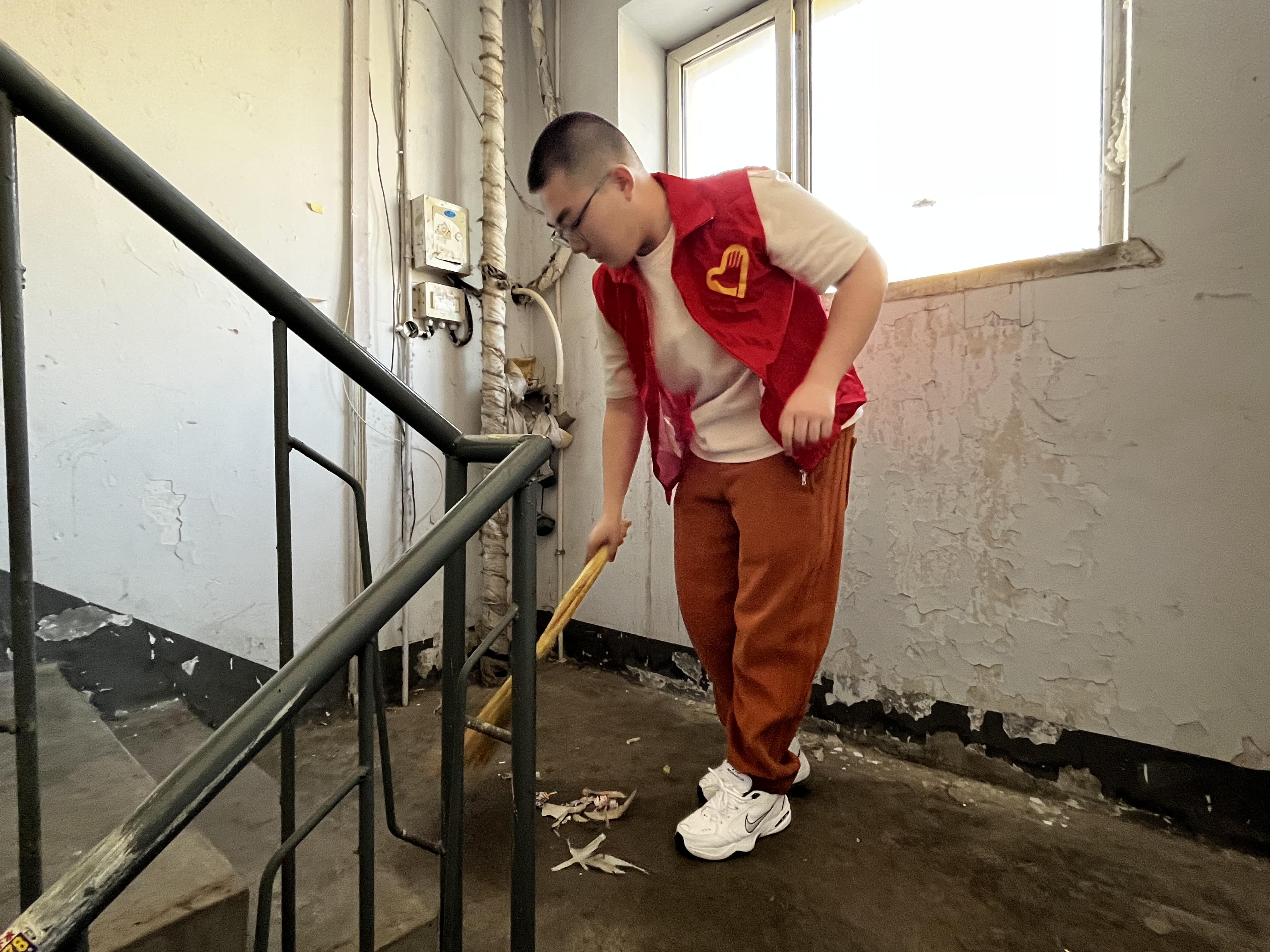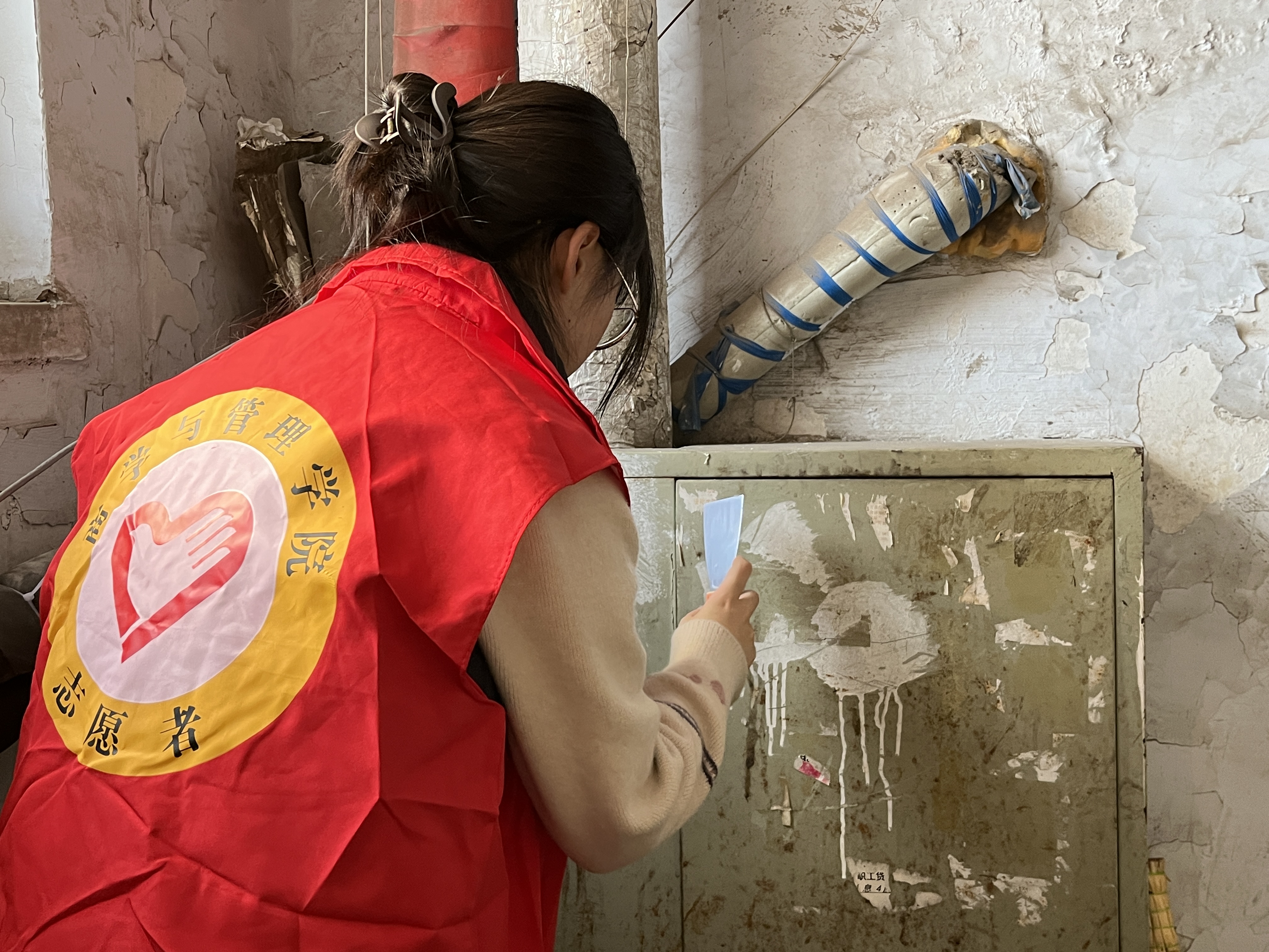 2024年3月4日下午1点钟,志愿者们在湖畔北门停车场集合后乘坐大巴前往建工社区。一点半抵达建工社区后,红旗街道建工社区书记安爽热情接待志愿者们,耐心详细地介绍了志愿服务活动的任务——深入社区清理楼道中的小广告以及邪教宣传内容。了解清楚任务后,志愿者们立即行动起来,拿上扫把和小铲子,两两一组清理小广告,楼道墙壁扶手住户家门上牛皮藓似的小广告在同学们热火朝天的热情下很快被清理干净,建工社区居民楼的楼道在志愿者们的劳动中焕然一新。