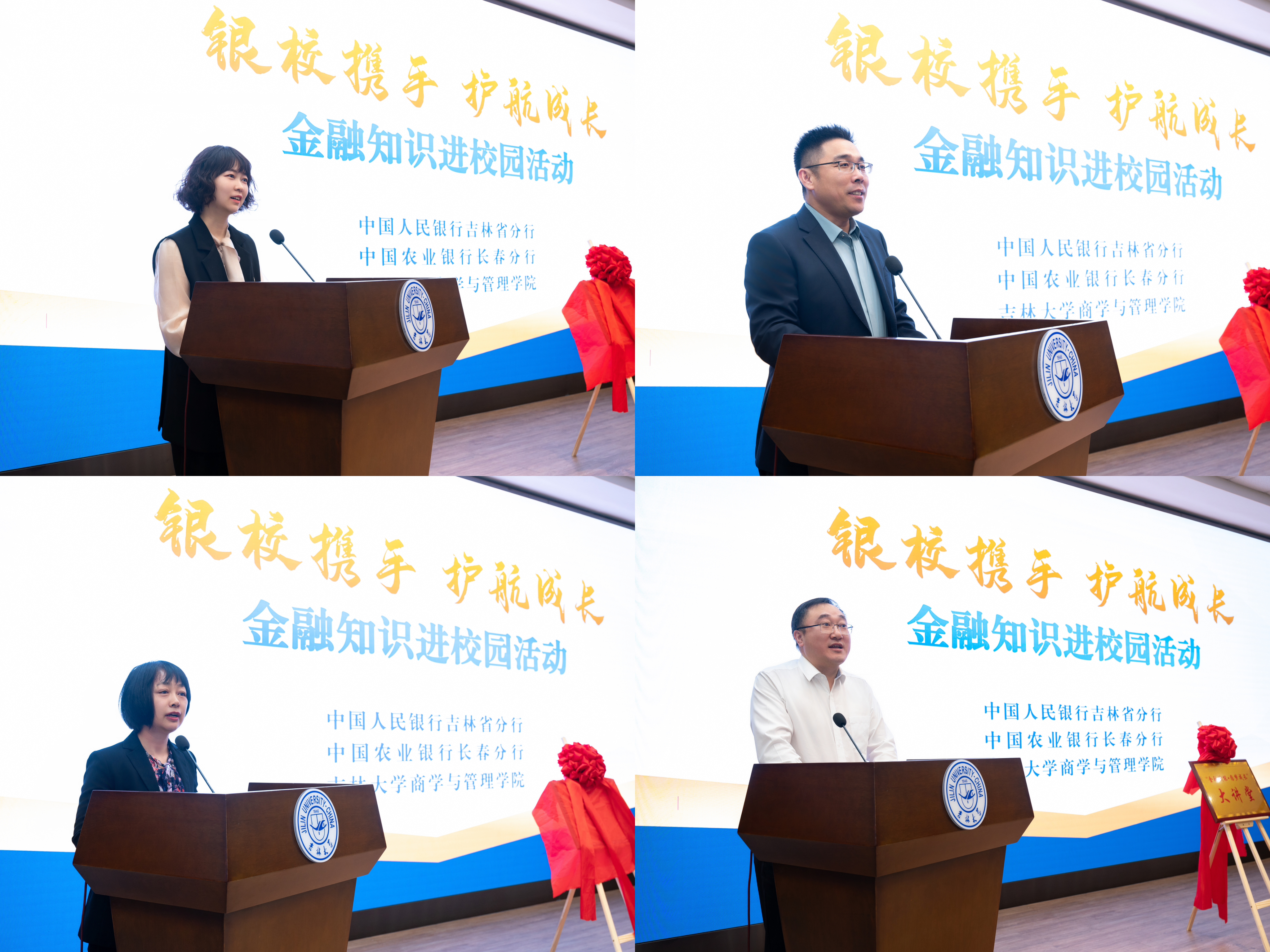 在“金融赋能·圆梦成长”大讲堂启动仪式上,首先由EMC易倍官网公司党委副书记兼副经理李帅老师致辞,李帅老师向各位领导的到来表示了热烈欢迎并希望未来能够和银行合作共赢共同发展,将论坛和品牌持续发展下去。随后由中国人民银行吉林省分行宣传群工部朱慧玲部长做讲堂推介,朱慧玲部长向大家介绍了金融作为员工未来工作的重要性,希望同学们能够学懂金融,用好金融。在建设金融强国的大背景下,进一步加强中国人民银行吉林省分行与农行长春分行吉大商管公司的沟通联动,切实推进讲堂建设不断深入。接着三方领导为“金融赋能·圆梦成长”宣讲品牌揭牌启动并合影留念。启动仪式后,由中国农业银行长春分行党委委员张鹏副行长做开篇第一讲,张行长着重为大家介绍了学习金融知识的重要性,希望同学们未来能够为金融高质量发展作出自己的贡献。