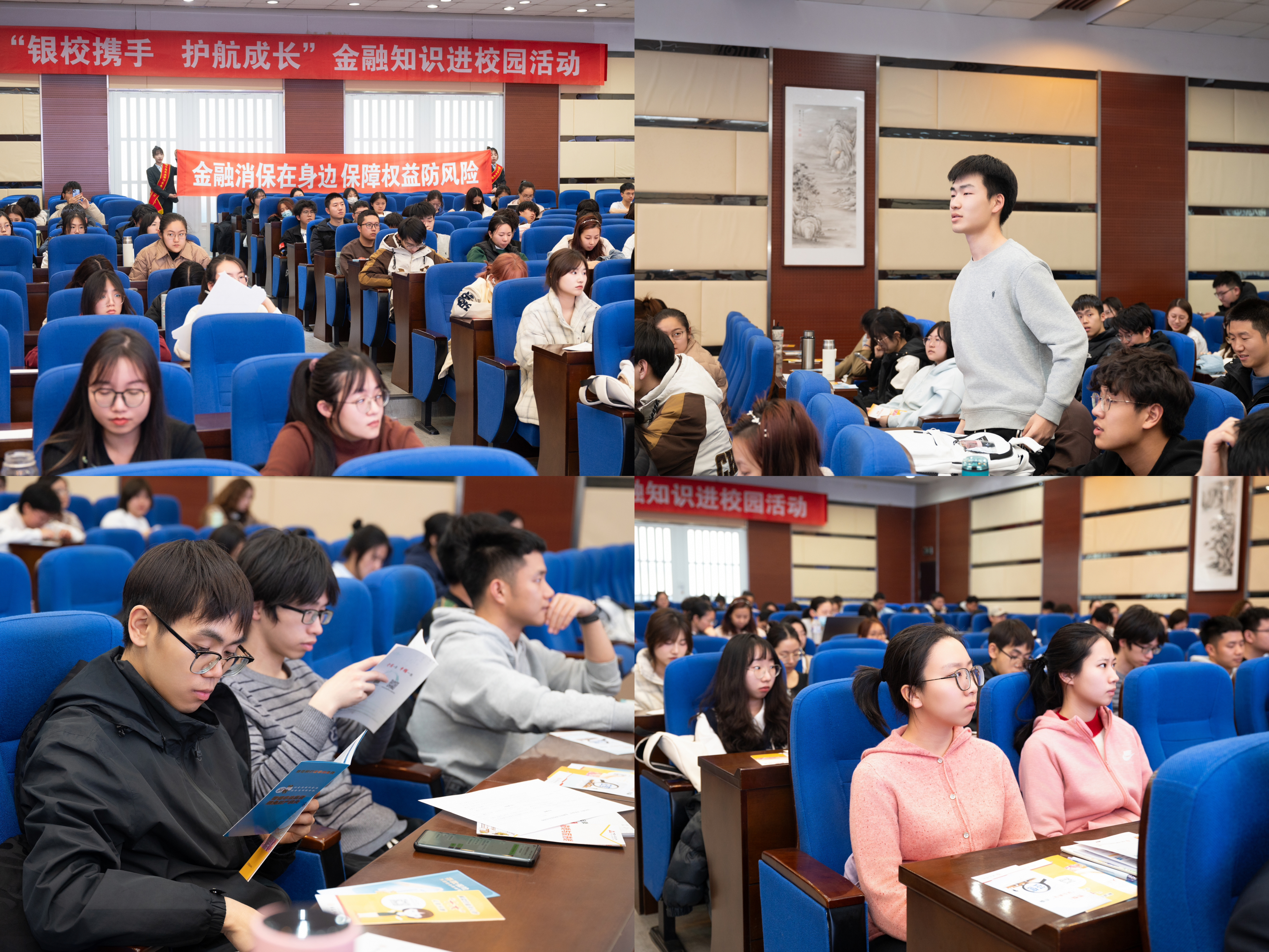 讲座结束后,来自中国人民银行吉林省分行的李澳讲师张嘉芮讲师孙庆嘉讲师以及中国农业银行长春东南湖大路支行的朱宇轩行长就征信报告存款保险人民币防伪与数字人民币金融防诈及理财银行就业及职业规划等金融方面的知识做宣讲。四位宣讲员结合时下金融热点,引用征信查询保险购买数字人民币校园贷等话题,引导同学们树立科学理性健康的生活消费观和投资理财观,有效提高了同学们在金融风险防范意识,增强了抵御金融诈骗风险能力。宣讲现场气氛活跃,同学们积极互动咨询。最后,来自中国农业银行长春分行的王蕊部长为同学们从银行就业及职业规划上进行了解析。活动结束后,同学们纷纷表示学习到了很多金融方面的知识,并对未来的职业规划有了较为清晰的目标。
