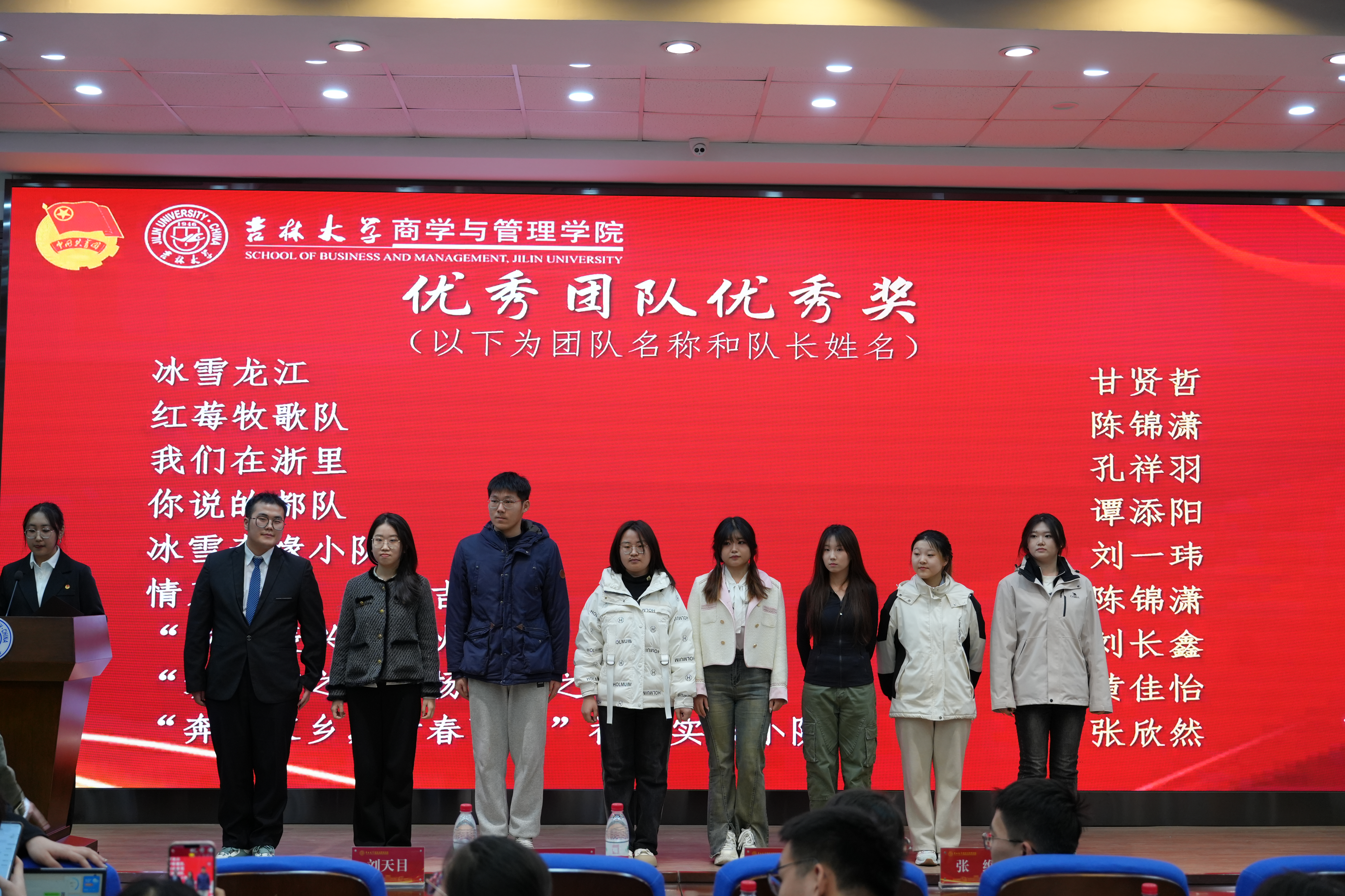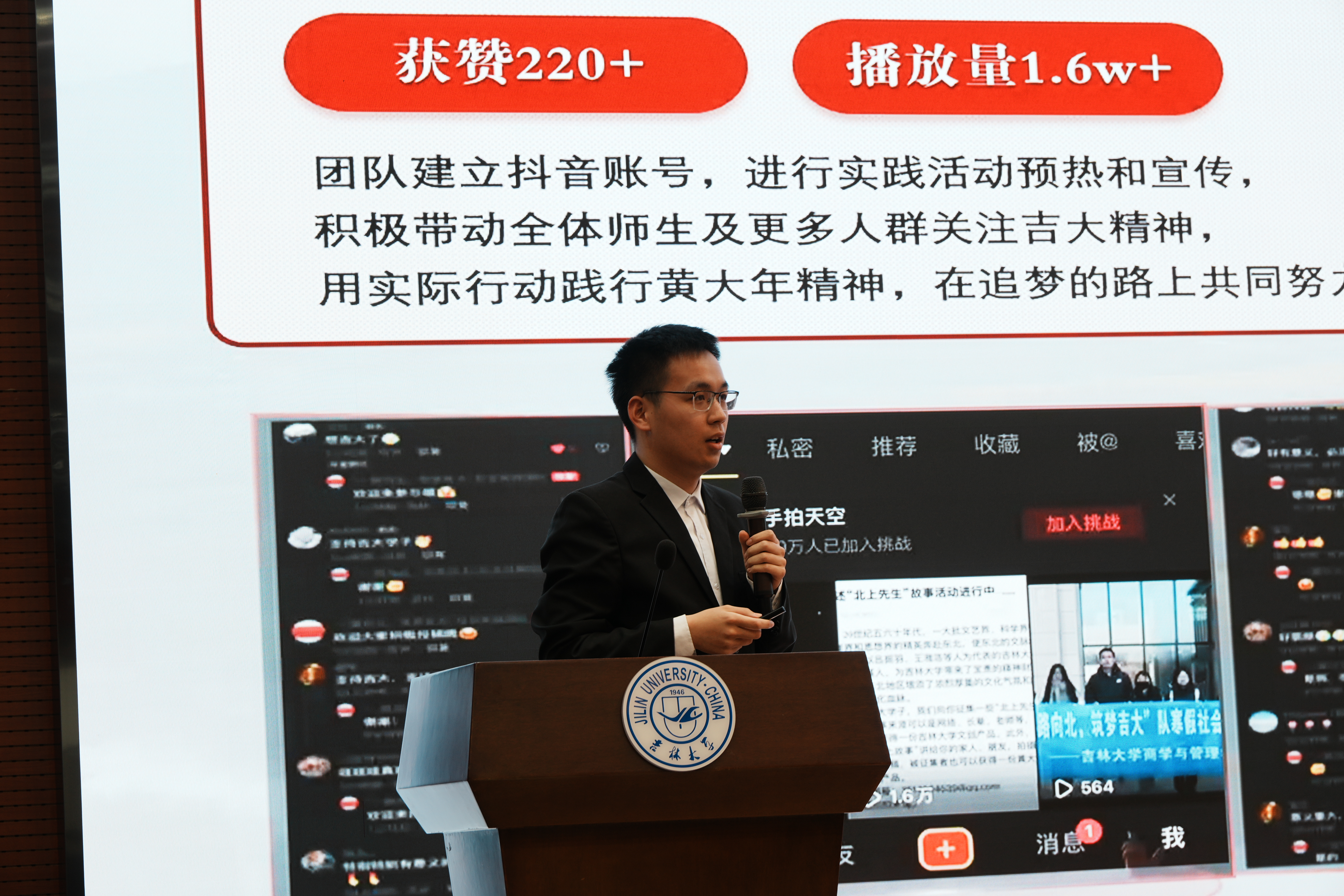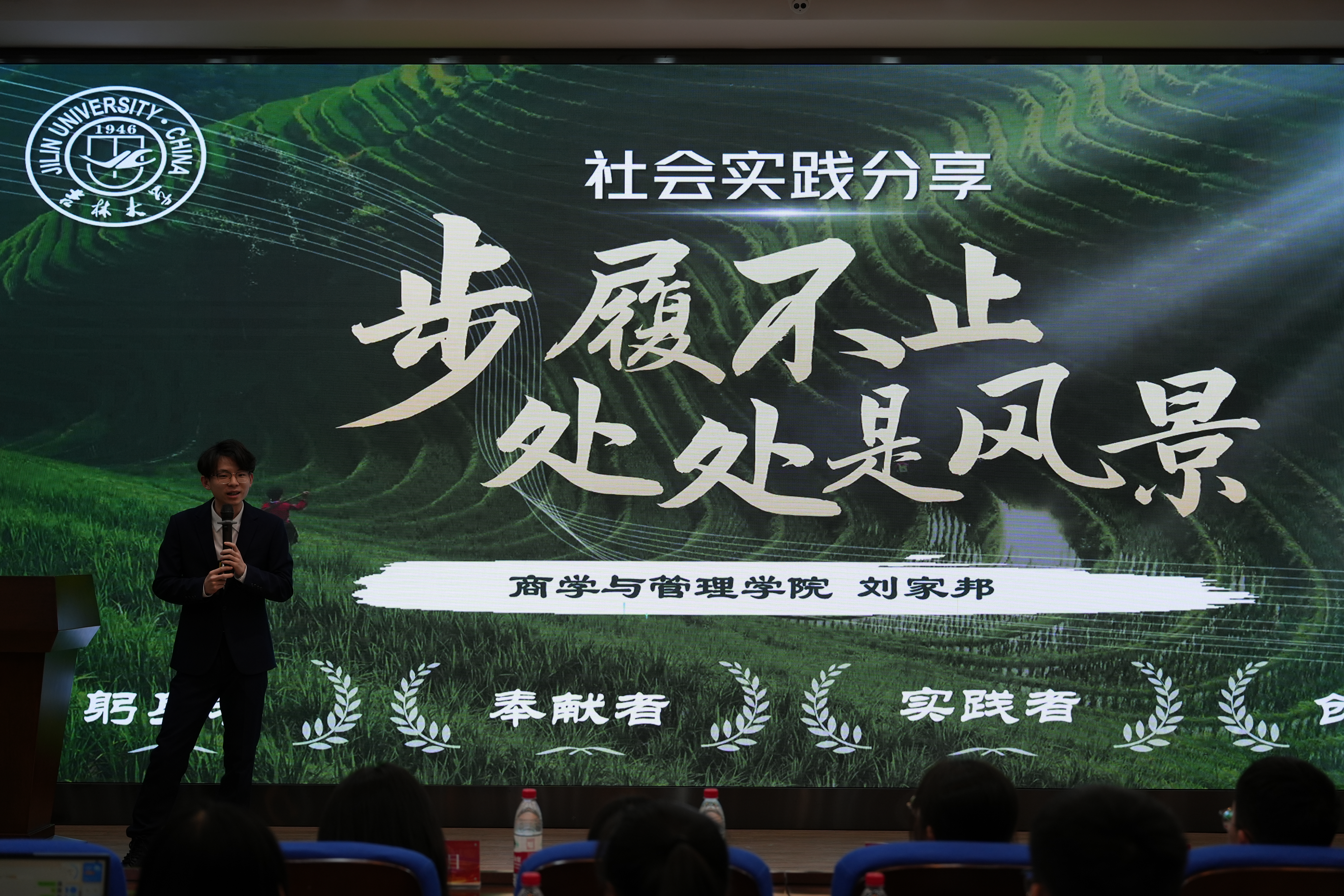 大会第三项,获奖队伍代表刘家邦梁楷悦邵桂含万锐捷依次上台,分享了他们在社会实践活动中的经验和感悟。他们分别从不同的角度讲述了自己在实践中的所见所闻所思所感,以及如何将理论知识与实践相结合,解决实际问题。他们的分享不仅让在场的同学们深受启发,也为今后开展社会实践活动提供了宝贵的经验。