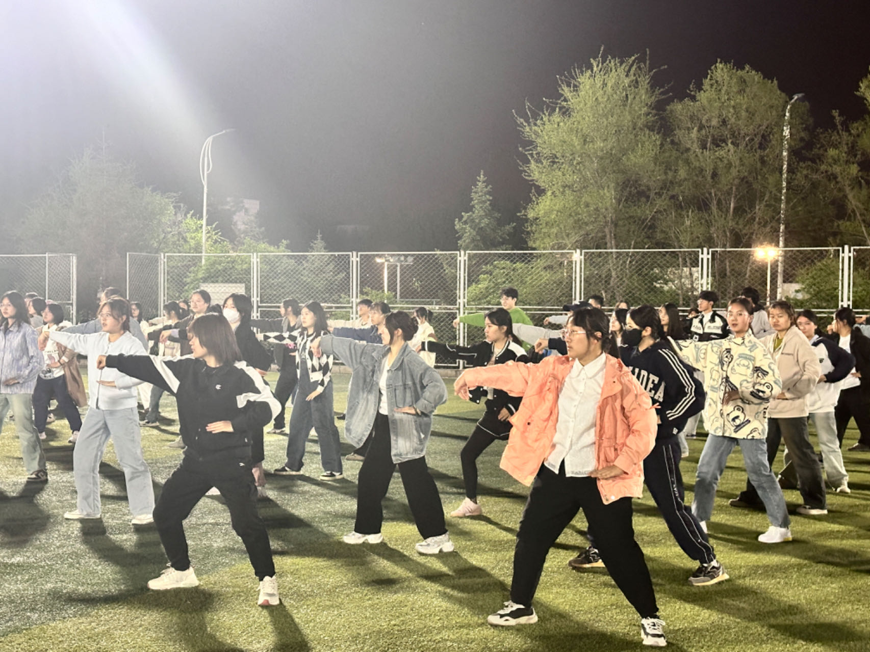 八极拳团队正在紧张地训练中,同学们的动作迅猛而准确,发声助威整齐有力。一招一式尽显中华武术的深邃与魅力,八极拳以其独特的技击特点,展现了力量与速度的完美结合。队员们在领队的指挥下,不断提高技艺,力求在运动会上展现出最佳状态。