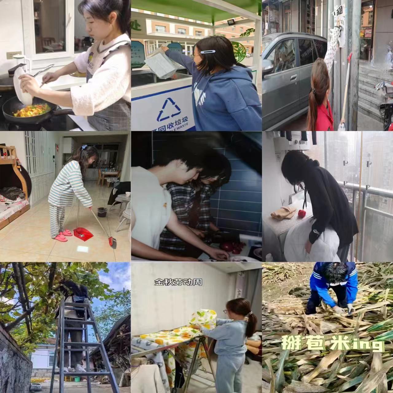 在这一周里同学们参与了清理街道慰问孤寡老人摆放共享单车。社会与自然见证了他们的劳动。一张张照片,一帧帧vlog视频留下了他们劳动的身影。以劳动为主题的书法作品绘画作品手抄报宣传视频更是令人耳目一新。活动结束后,公司统计出各个年级参与附加劳动的个人总时长,根据个人劳动时长以及相关证明材料的提交情况评选出本次活动每个年级的劳动团体和劳动之星各十名。