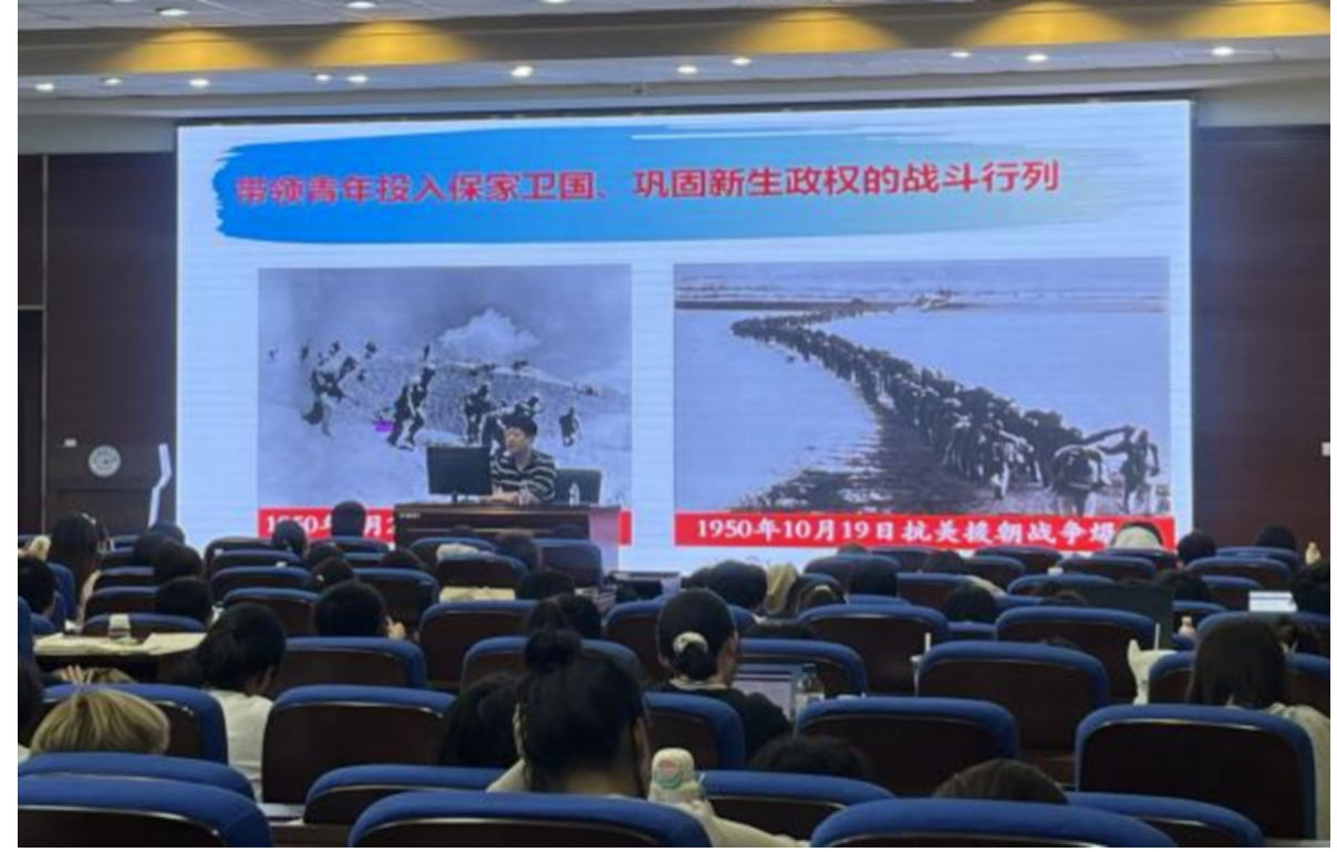 尹老师的讲述循循善诱,贴近同学们的生活,使整场讲座富有亲和力感染力。讲座中,尹老师从近现代史的角度入手,以时间为线索讲述了青年在革命运动中的重要作用。从抗日战争时期的东北抗联到抗美援朝的中国人民志愿军,再到近现代的革命运动,青年永远站在革命运动的第一线。尹老师通过一个个鲜活的例子引导同学们继承先辈的革命精神,挥洒独属于青年的一腔热血。