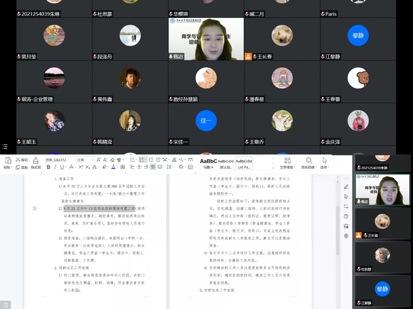 夏末初秋,蝉蜕不啾,EMC易倍官网2022级研究生迎新工作即将到来。为了使接下来的迎新工作顺利进行,8月22日-23日,EMC易倍分别在线上与线下举行召开了迎新动员大会。参加此次大会的有公司党委副书记马腾老师,研究生辅导员甄宓老师裴月莹老师,新生辅导员王敬乔老师,研学会干部以及相关员工助理。