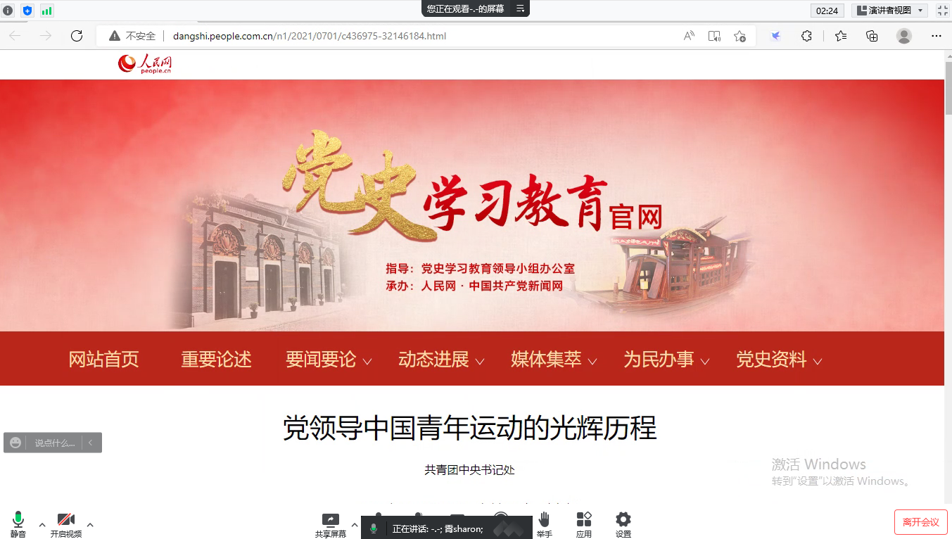 活动开始,团支书孙萌晨带领大家一起学习《党领导中国青年运动的光辉历程》,以时间为线介绍广大青年在中国共产党领导下为党和国家事业发展作出的重要贡献。随后,大家一同线上观看共青团中央五四网络直播。
