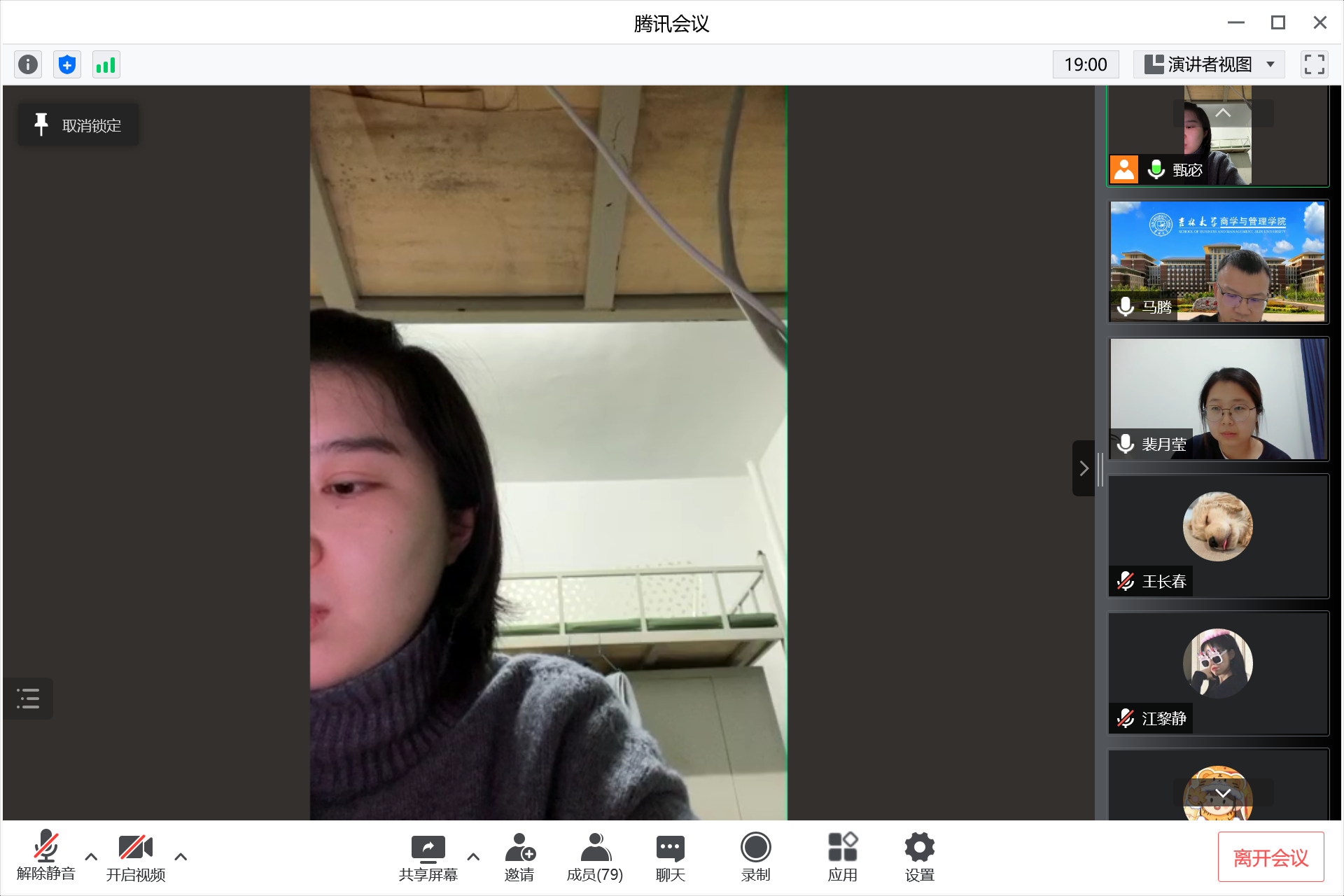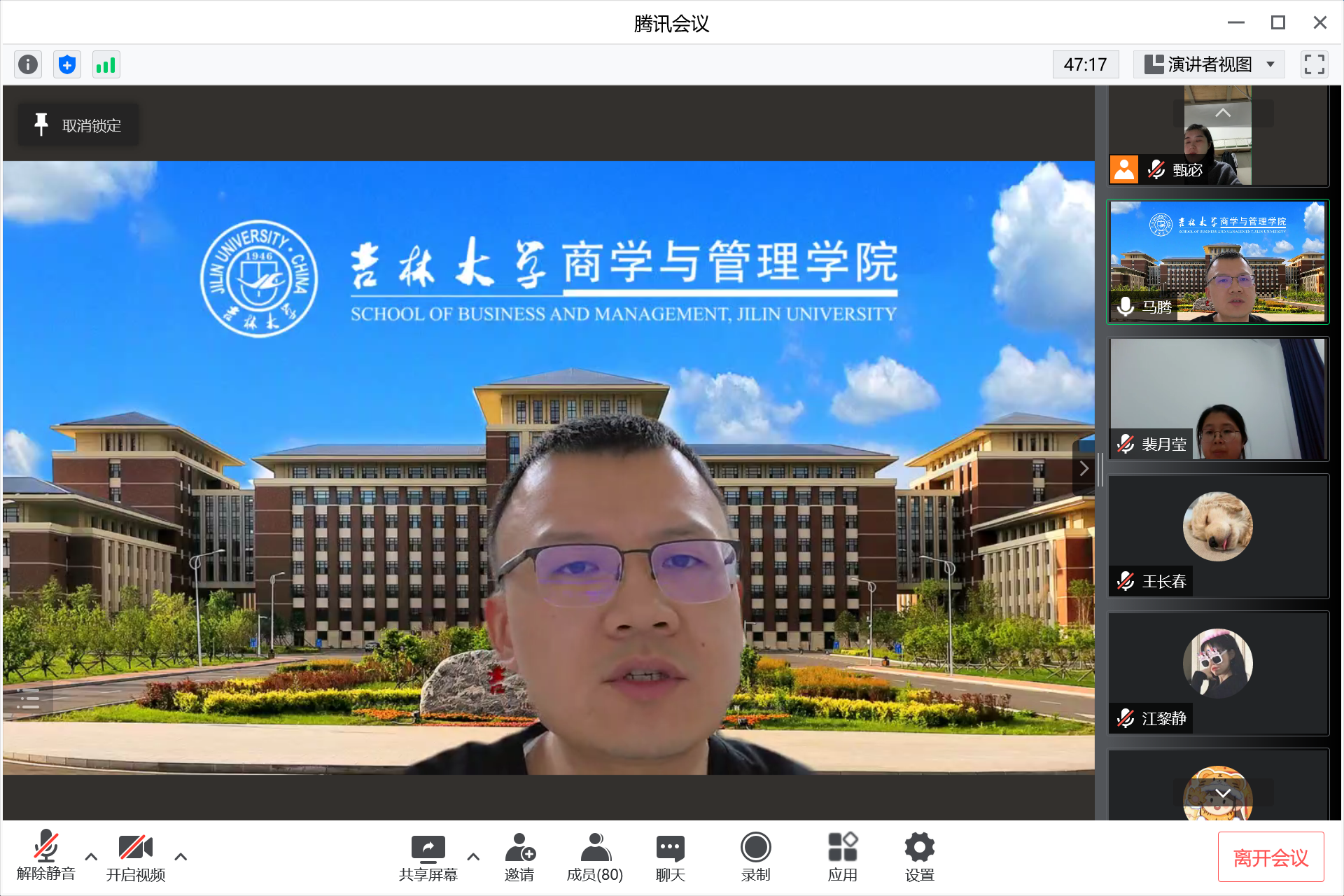 最后,马腾老师向全体员工干部自疫情以来的辛苦付出表示感谢,鼓励大家再接再厉,打好抗疫持久战。马腾老师提出,一是全体员工干部要坚定信心,相信公司相信公司,把正能量带给身边同学;二是做好老师和同学之间的纽带,疫情期间的通知较多,一定要准确及时的传达;三是要积极响应公司加强疫情期间宣传工作的通知,发挥好员工干部的主观能动性。最后,马腾老师鼓励大家,商管人要以实际行动共抗疫情,众志成城同舟共济!