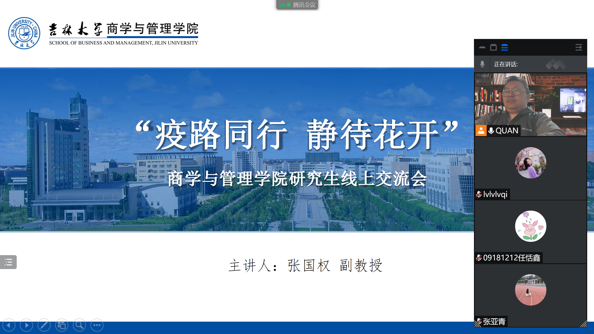 通过每周举办线上研究生研讨活动,不仅鼓励研究生对学术前沿进行不断探索,同时向研究生同学传达战胜疫情的必胜信心,让同学们在做好疫情防护措施的同时安心开展课程学习和学术研究工作。同心抗疫,共克时艰,让我们一起迎接美好春天的到来。