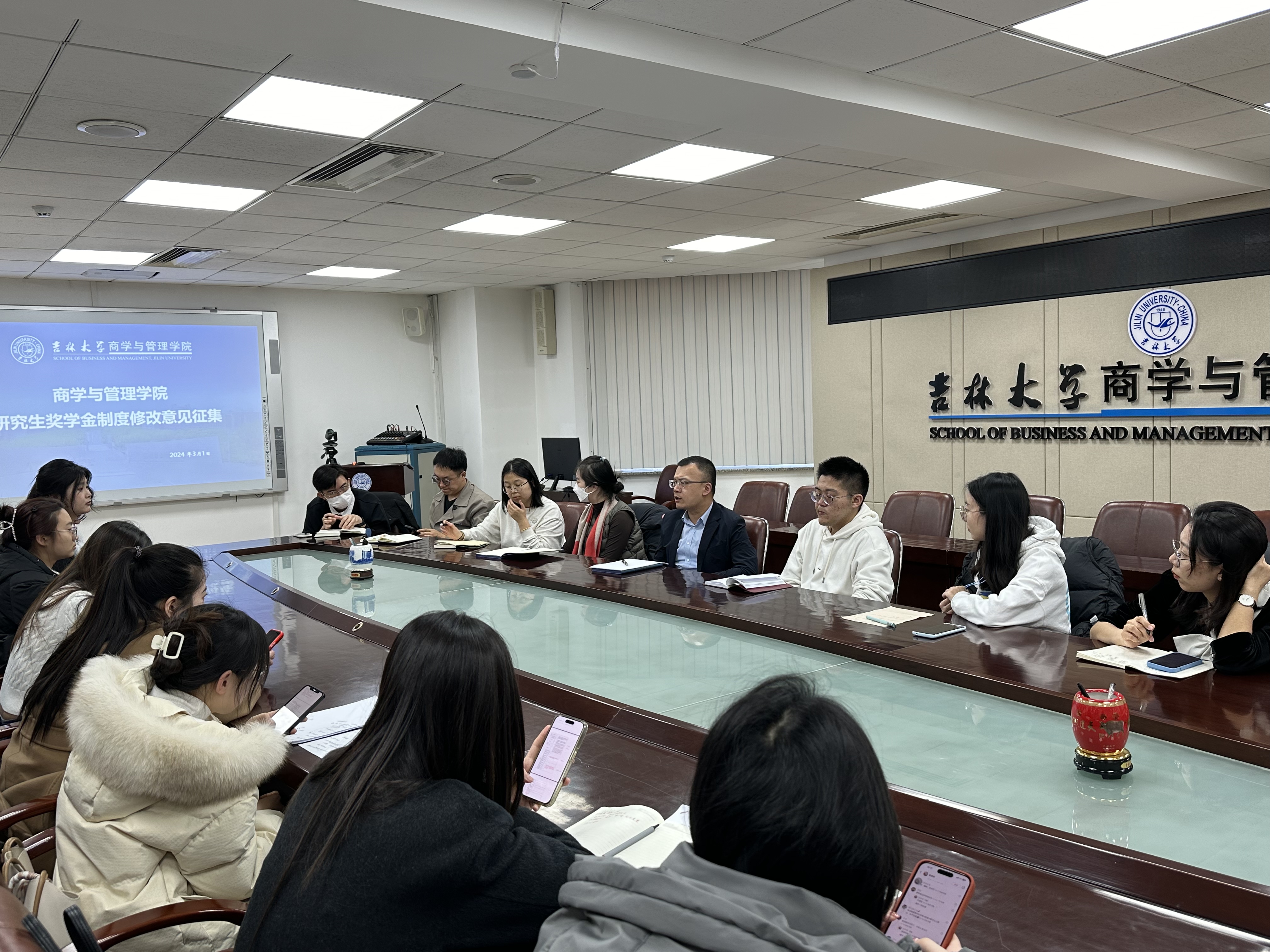 座谈会上,同学们积极参与,踊跃发言。员工代表结合自身班级情况,围绕学术生活实习见习就业前景职业规划以及教学环境等方面畅所欲言,各抒己见。现场气氛轻松融洽,充满活力。老师认真倾听各研究生代表提出的建议和意见,就相关问题进行了详细的解释和具体的说明,结合自身经历指出,员工代表在员工与辅导员之间扮演着重要角色,是沟通的桥梁和信息传递者。希望各员工代表可以进一步关注班级同学的学业和身心状况,促进员工与辅导员之间的有效沟通,承担起对同学负责为同学服务的重要责任。