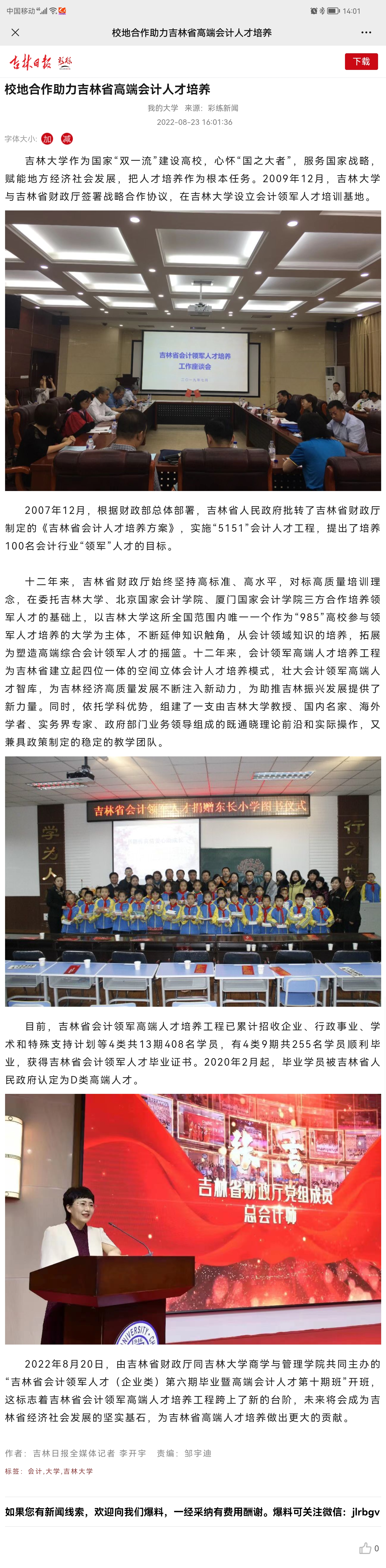吉林日报关注:校地合作助力吉林省高端财务人才培养