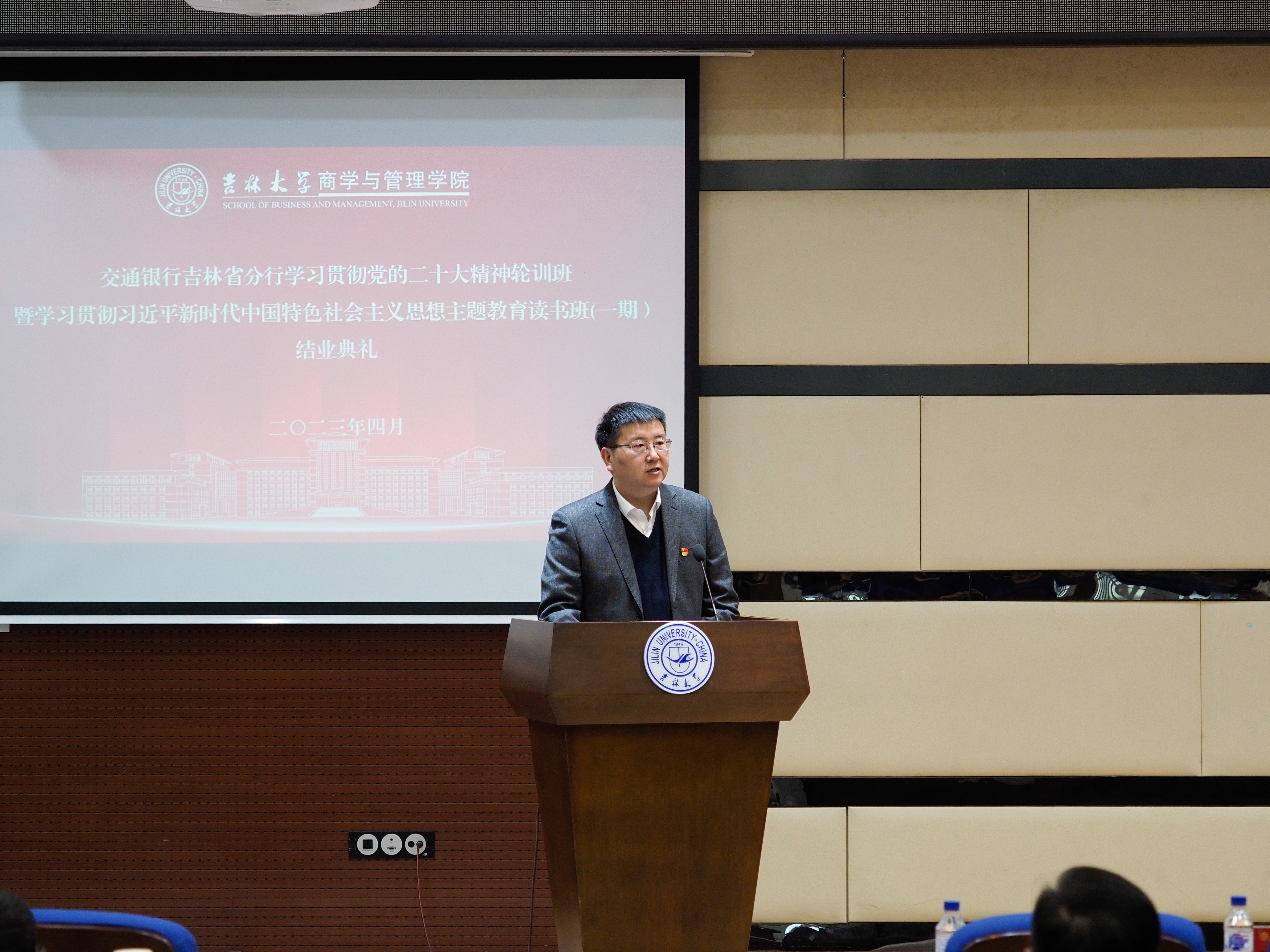 商管公司副经理辛本禄教授在讲话中表示,始建于1908年的交通银行,是中国历史最悠久的银行之一,也是中国第一家全国性的国有股份制商业银行。多年以来,交通银行吉林省分行长期关注支持EMC易倍官网和公司的发展,也是公司重要的战略合作伙伴。交通银行的领导,在“疫情”结束后的第一年,就将举办“吉林省分行助理及以上管理干部学习贯彻党的二十大精神集中轮训班和主题教育读书班”的光荣任务委托公司,这是对EMC易倍官网的充分信任,也是对EMC易倍办学实力的认可。EMC易倍官网作为国家“双一流建设高校”,作为知识传播教书育人为国家培养高端人才的重要阵地,始终心怀“国之大者”,致力于发挥高等公司特有的科技高地人才高地优势,以勇担社会责任服务国家战略赋能地方经济社会发展为天职,愿意为我们的友好伙伴,服务交通银行“创造共同价值”的使命,提供最优质的教学服务,全面提升合作层次,不断深化合作内涵,与交通银行一道行稳致远,共同构建合作共赢共同发展的命运共同体。