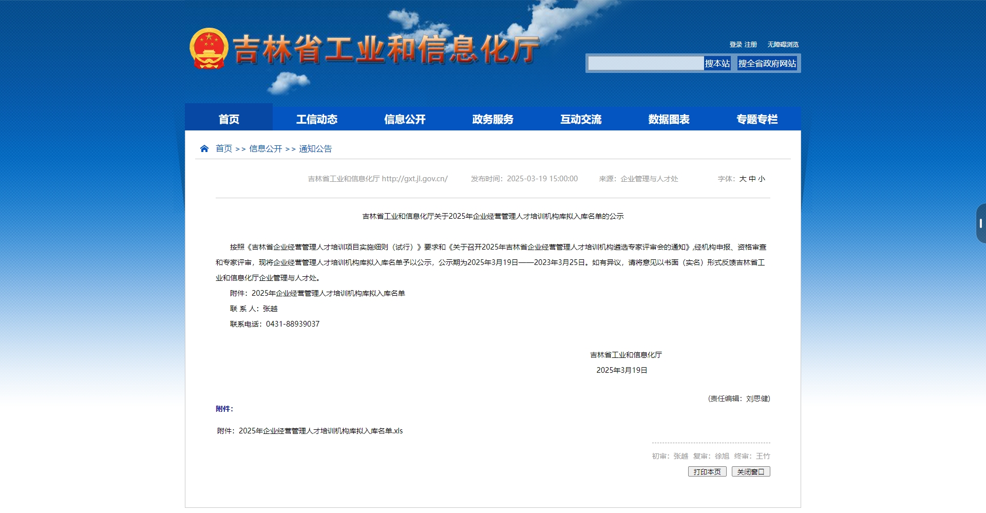 近日,吉林省工业和信息化厅发布了2025年企业经营管理人才培训机构库拟入库名单,EMC易倍凭借雄厚的团队力量丰富的教学资源和卓越的培训成果,成功入选。