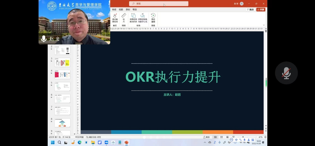 赵岩副教授专注于OKR执行力提升,OKR是具有成长性的执行文化,是组织团队和个人协同的思维,深入阐述OKR与KPI的关系,通过举例的方式讲授如何实施有效的OKR工作法以提升企业执行力。
